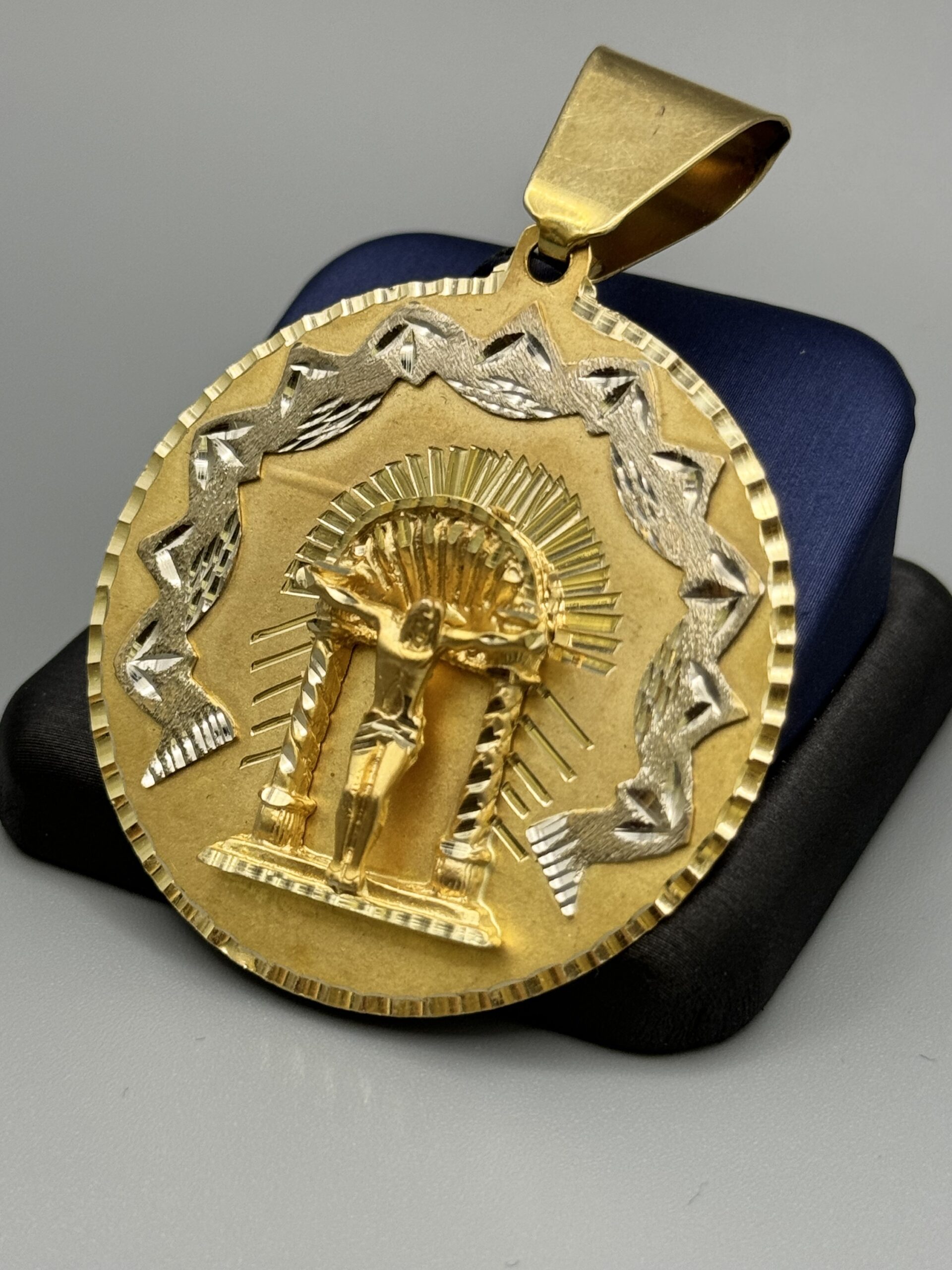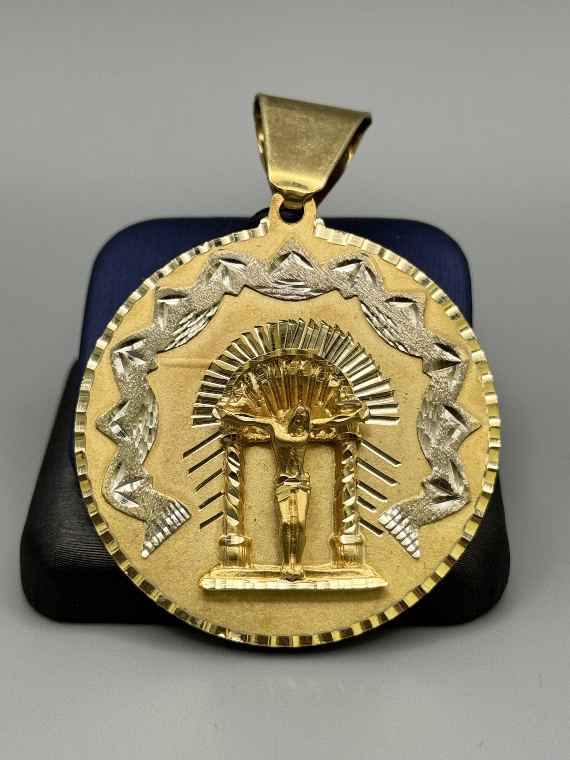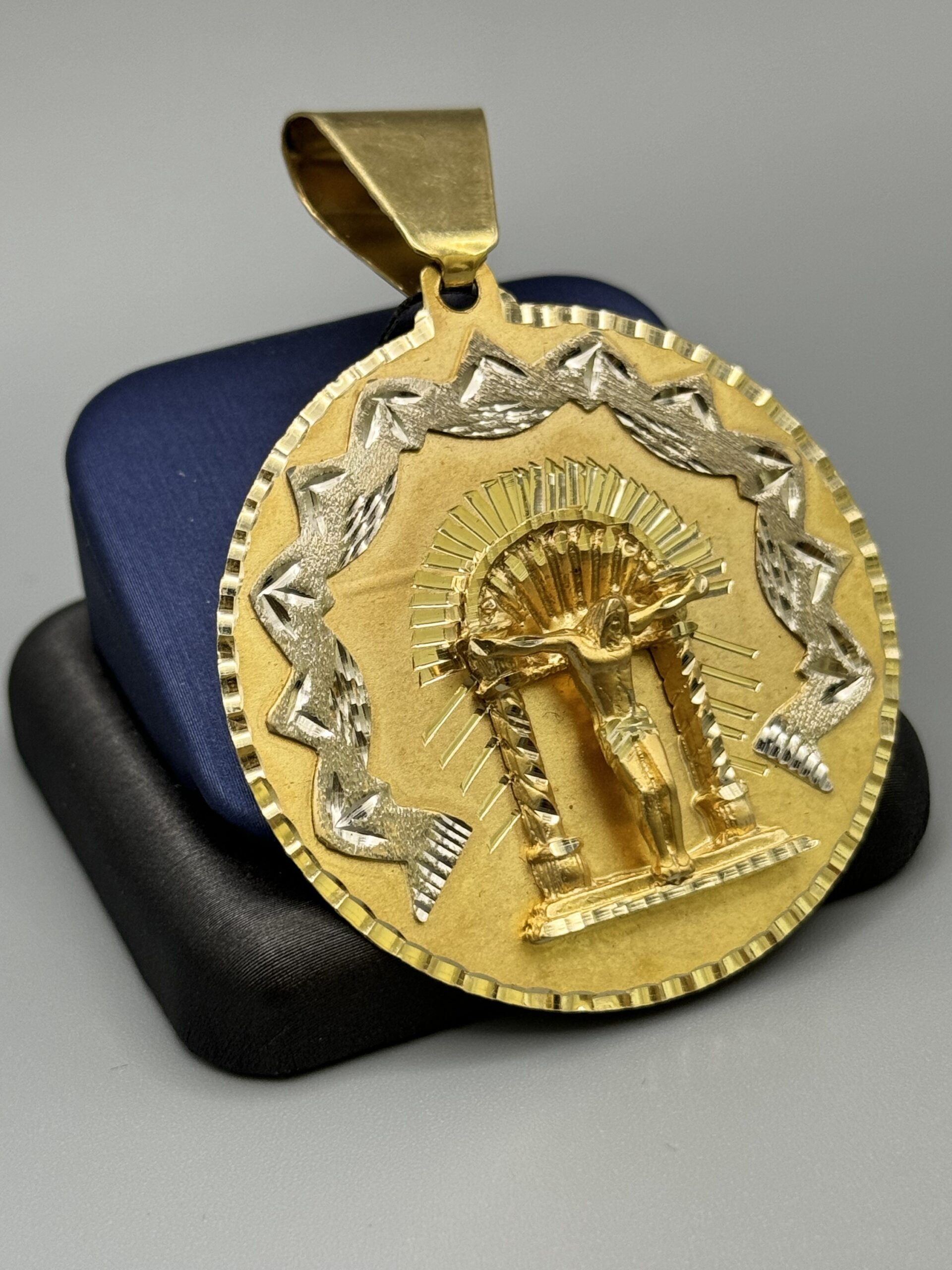 10KT Gold Round Jesus Pendant Round Solid Plate Approx Gold Weight 15.8 Gram 2.25″ Tall By 1.9″ All Around