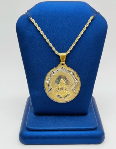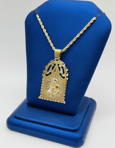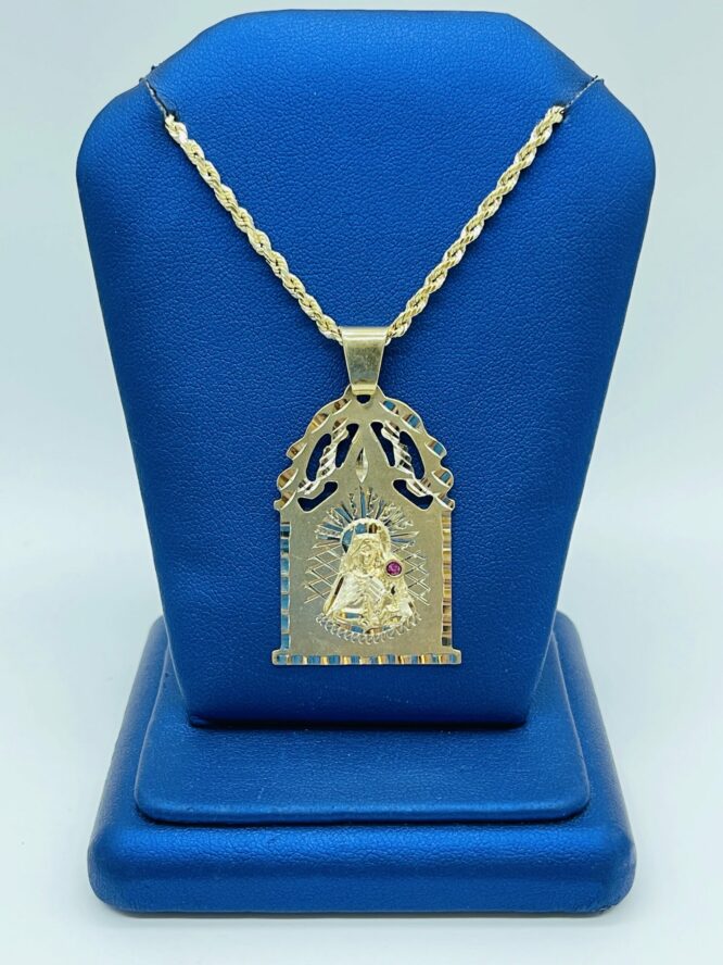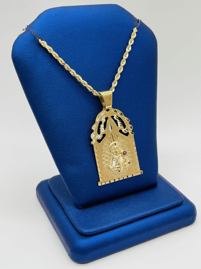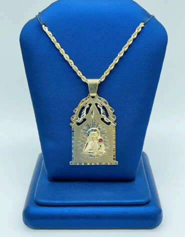 10KT Gold Santa Barbara Pendant ComboSet Comes With 10KT DiamondCut Rope Necklace 22″ 3MM Approx Gold Weight 4.83 Gram Pendant 1.75″ Tall Includes Bell By 1″ Wide Approx Gold Weight 5.58 Gram