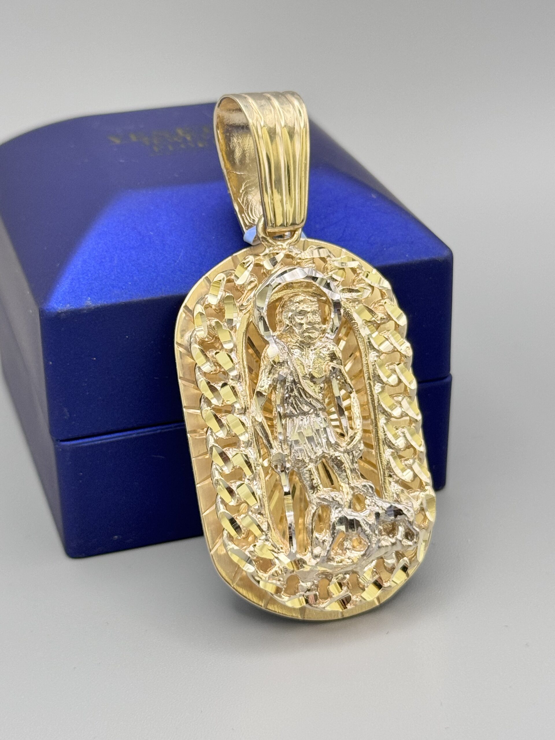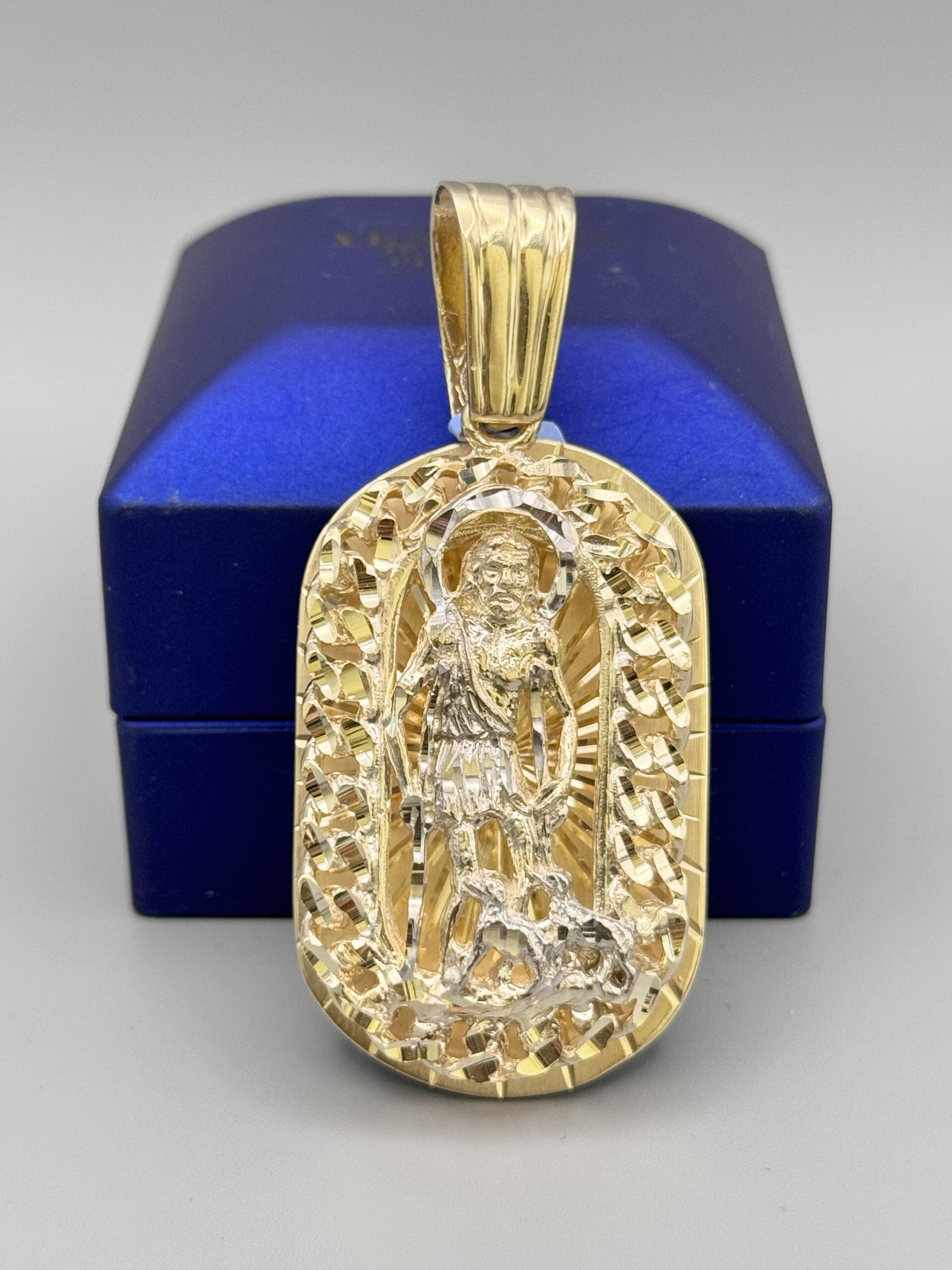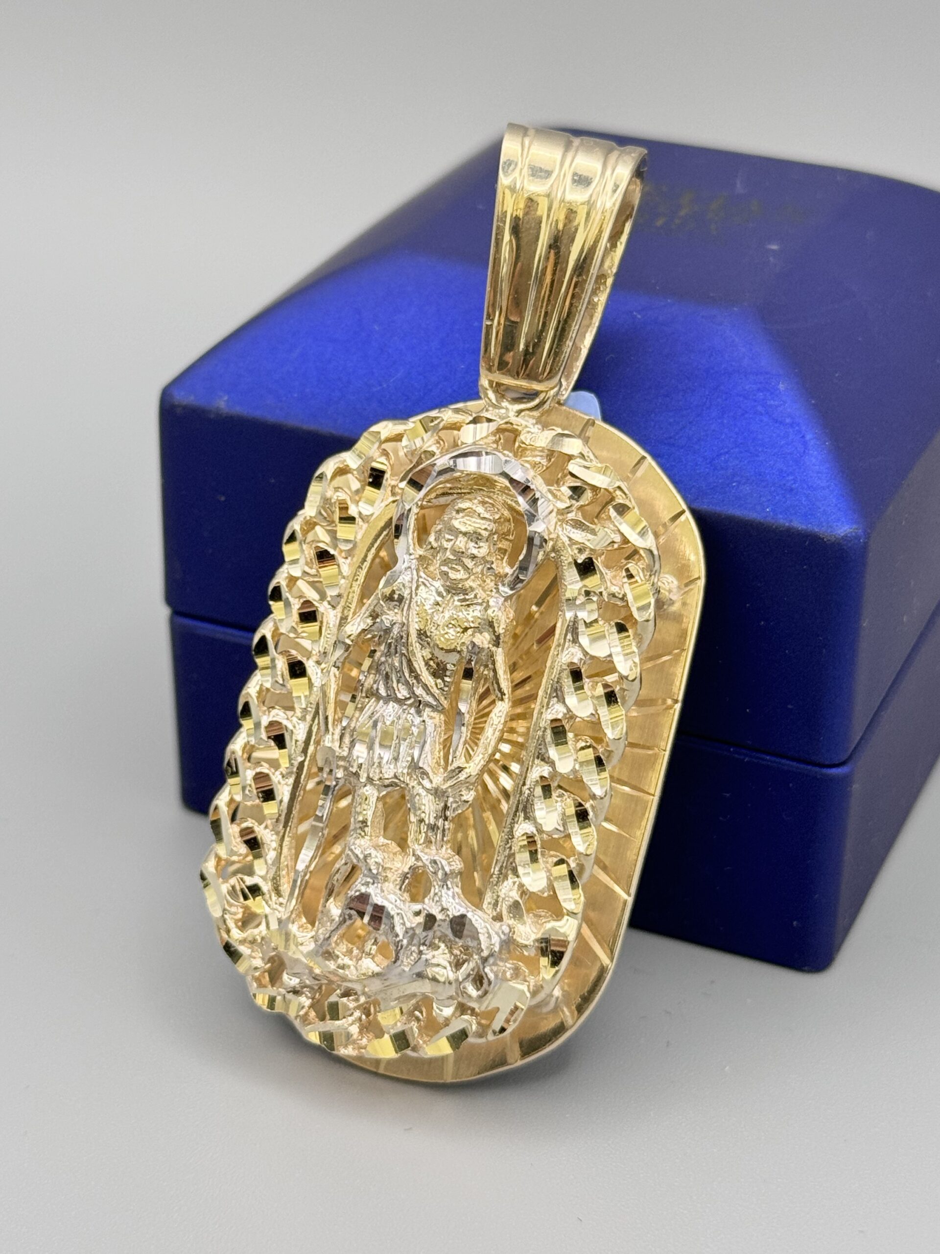 10KT Gold Solid St.Lazaro Pendant Solid Back 3D 2.75″ Tall By 2″ Wide Approx Gold Weight 28.7 Gram