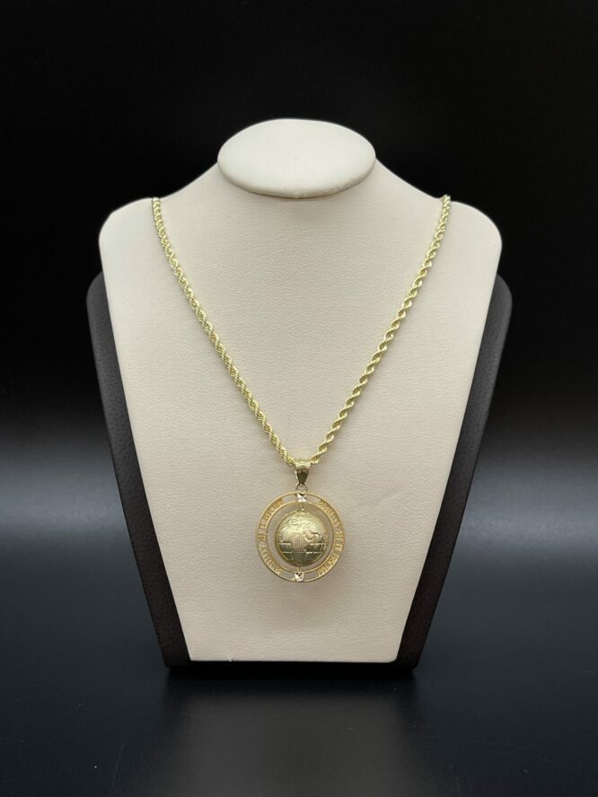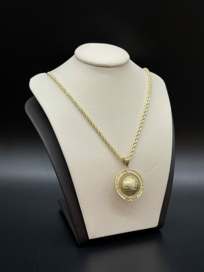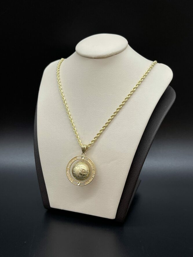 10KT Gold Spinning Globe Pendant Set Comes With 20″ Rope Necklace Approx Weight 6.78 Grams
