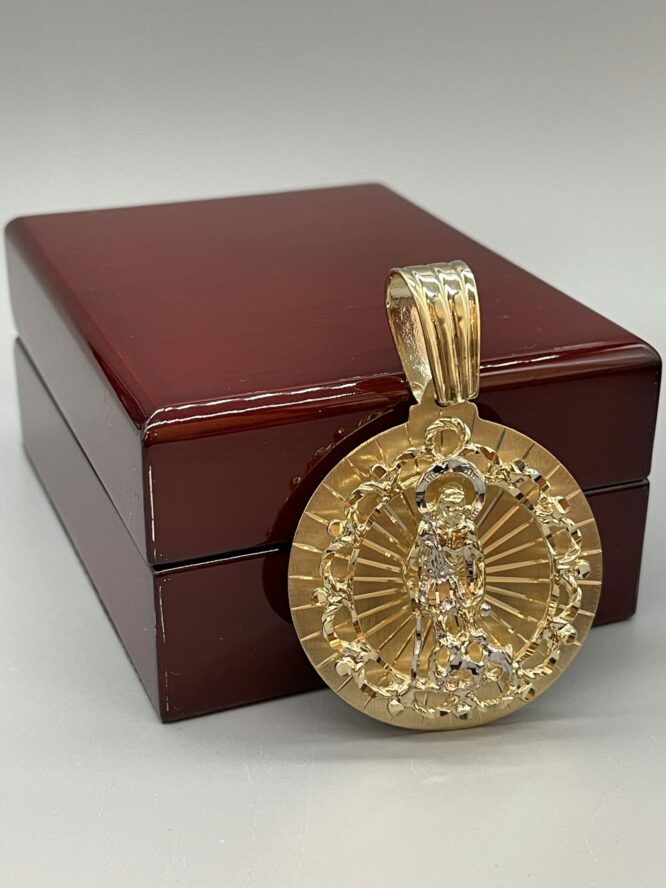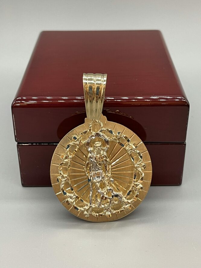 10KT Gold St Lazaro Pendant 2.5 Inches Tall Approx Gold Weight 24.45 Gram
