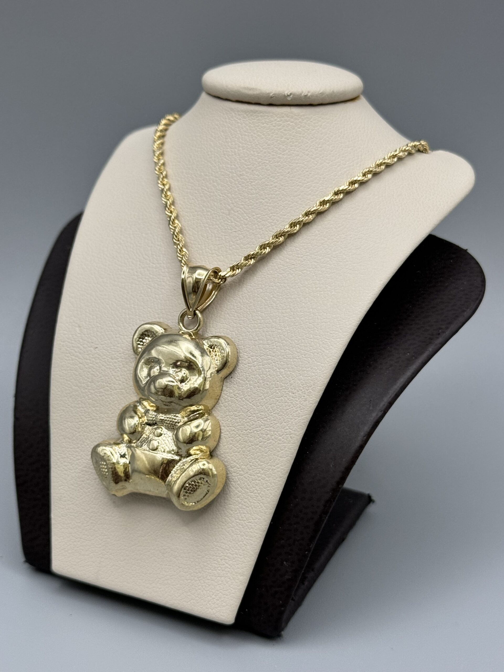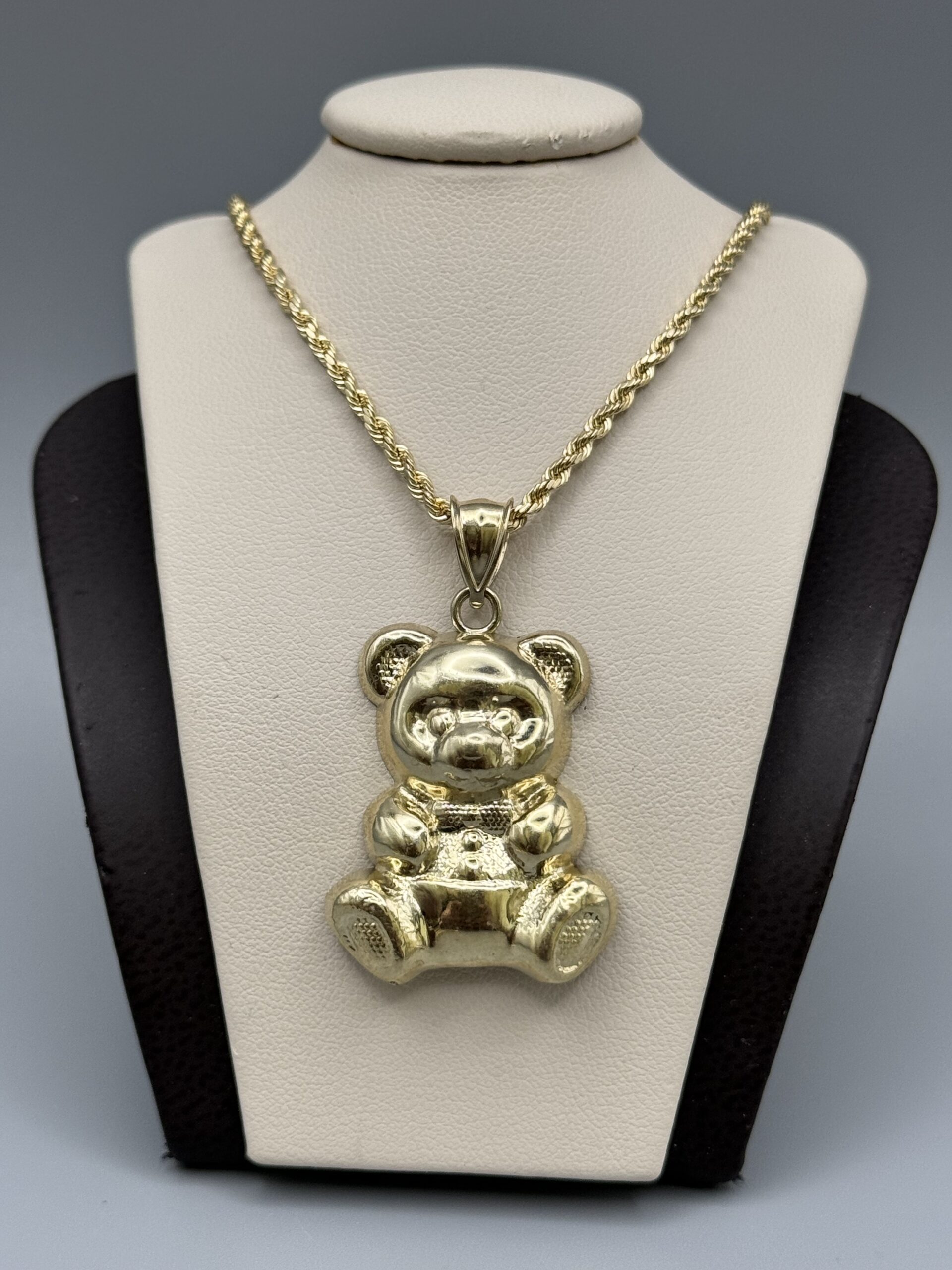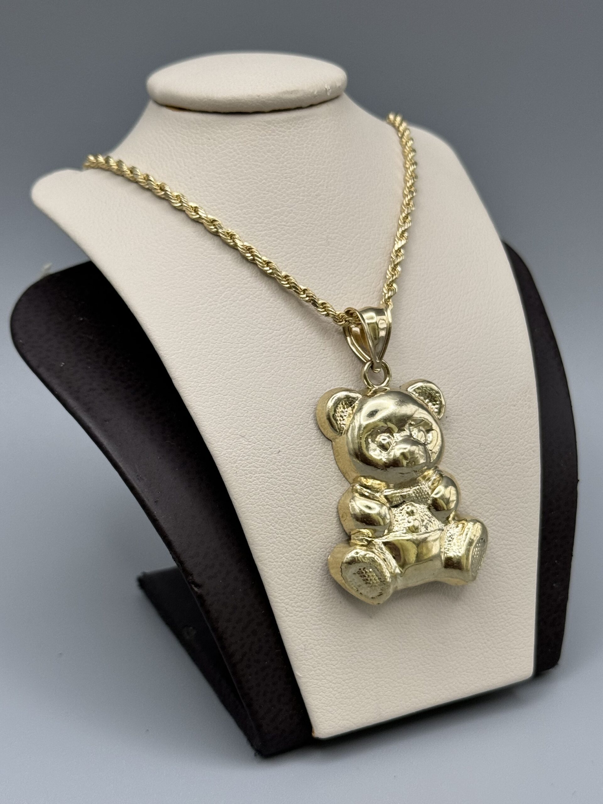 10KT Gold Teddy Bear Pendant ComboSet Comes With 10KT Gold 2MM Rope Necklace 22″ Approx Gold Weight 3.1 Gram Pendant 1.75″ Tall By 1″ Wide Approx Gold Weight 4.9 Gram