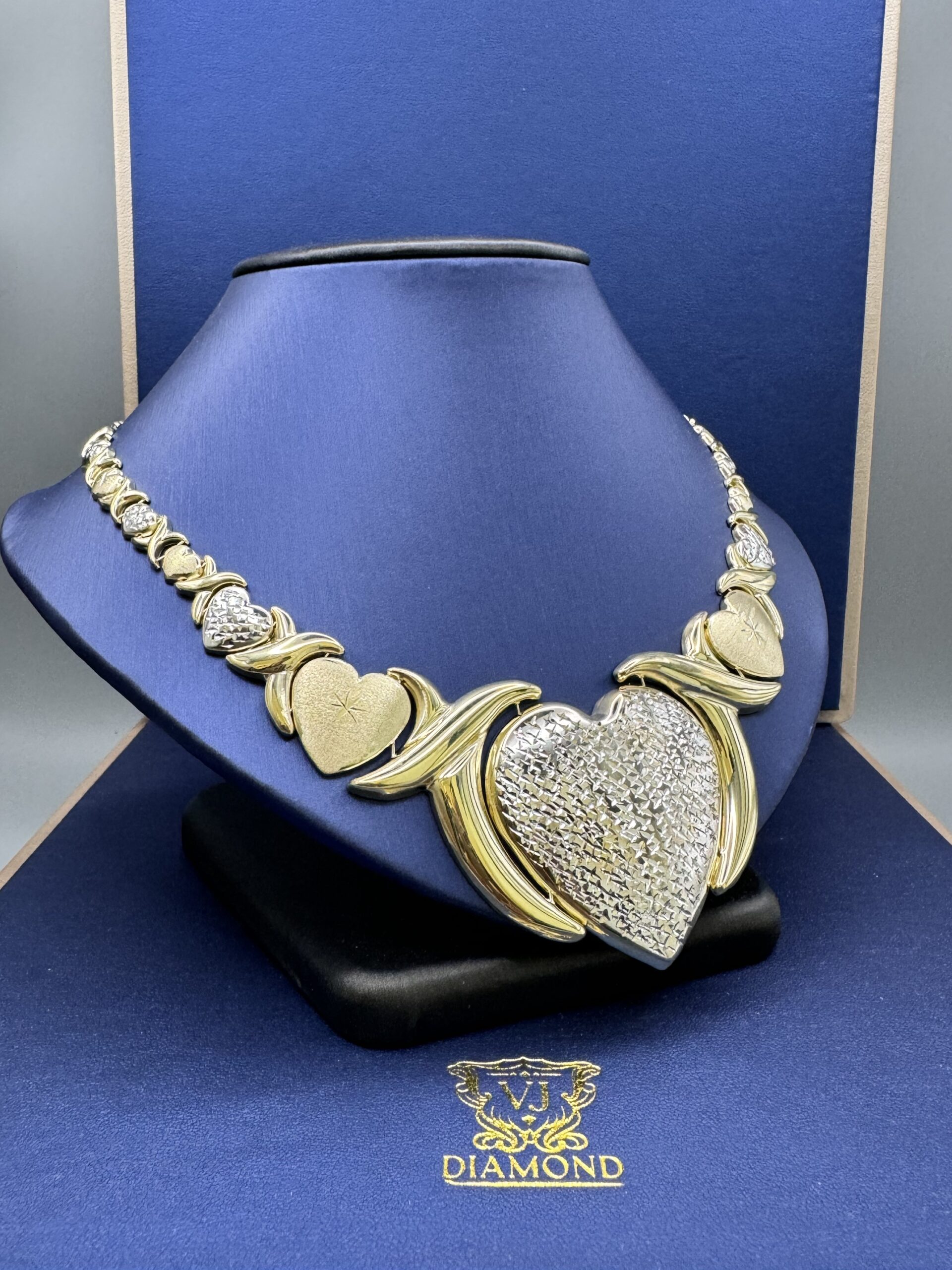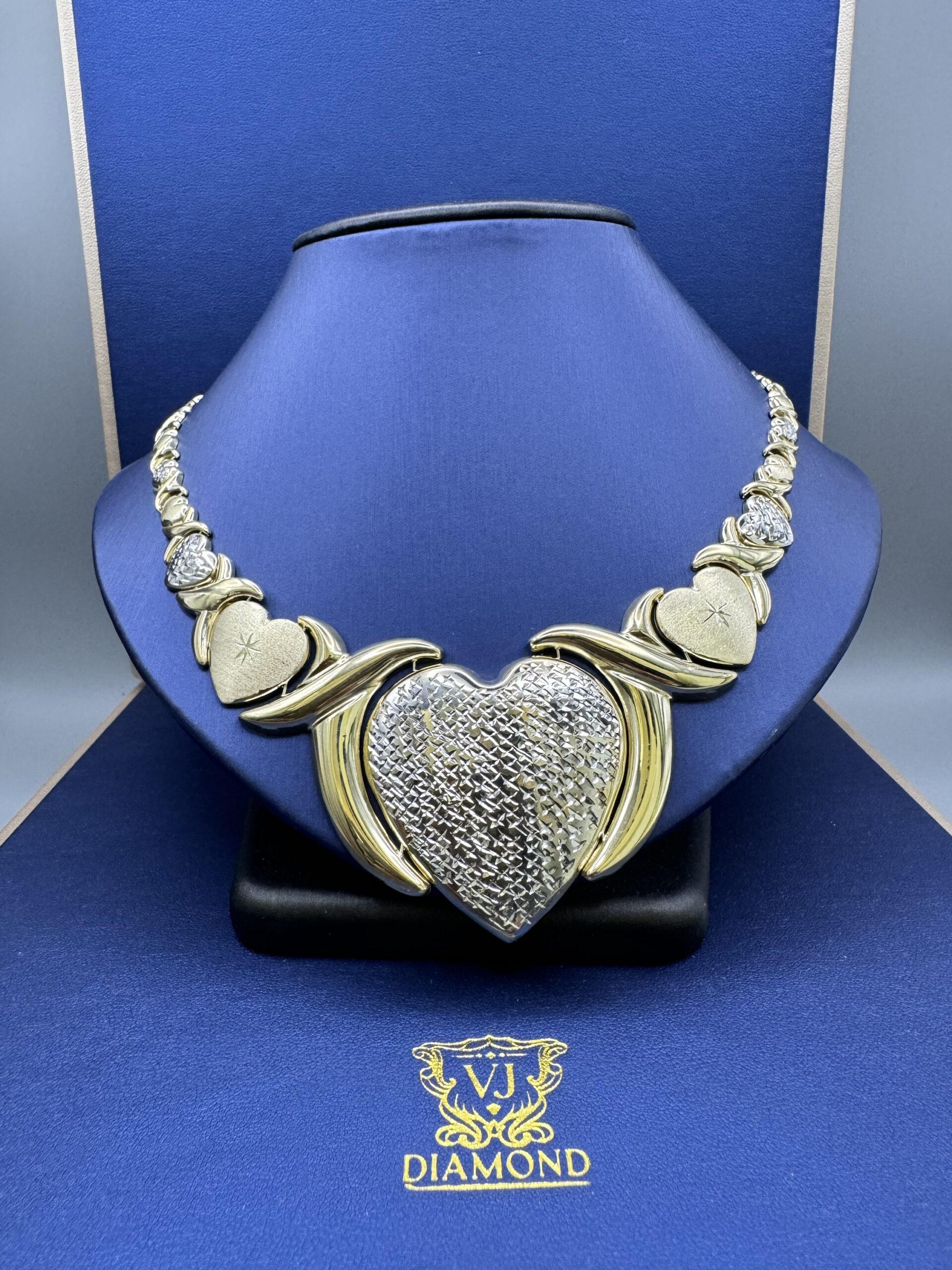 10KT Gold XNHeart Necklace Jumbo Heart White Gold N Yellow Gold Approx Gold Weight 31.7 Gram 18″ Solid Back 47 Heart Width
