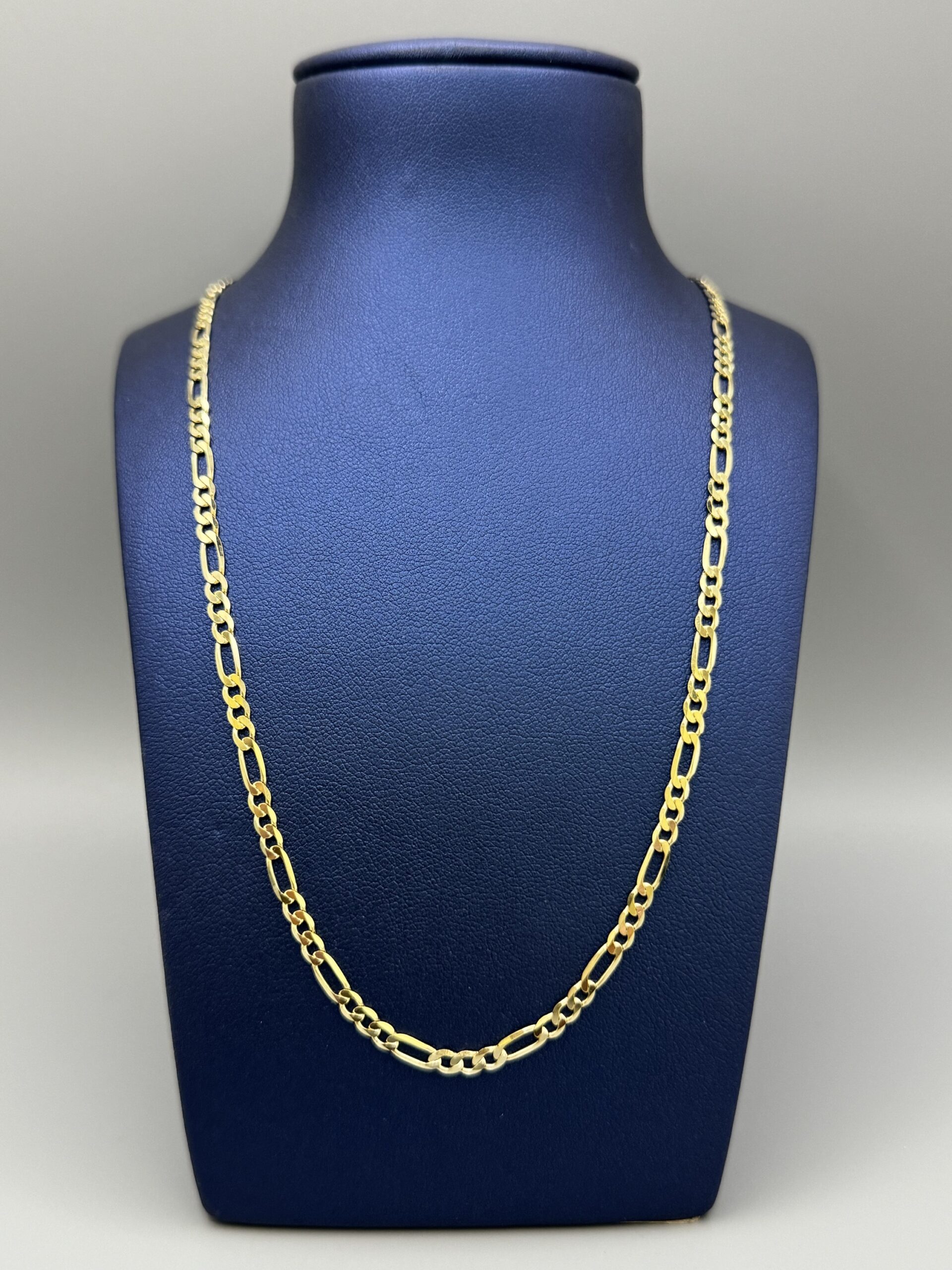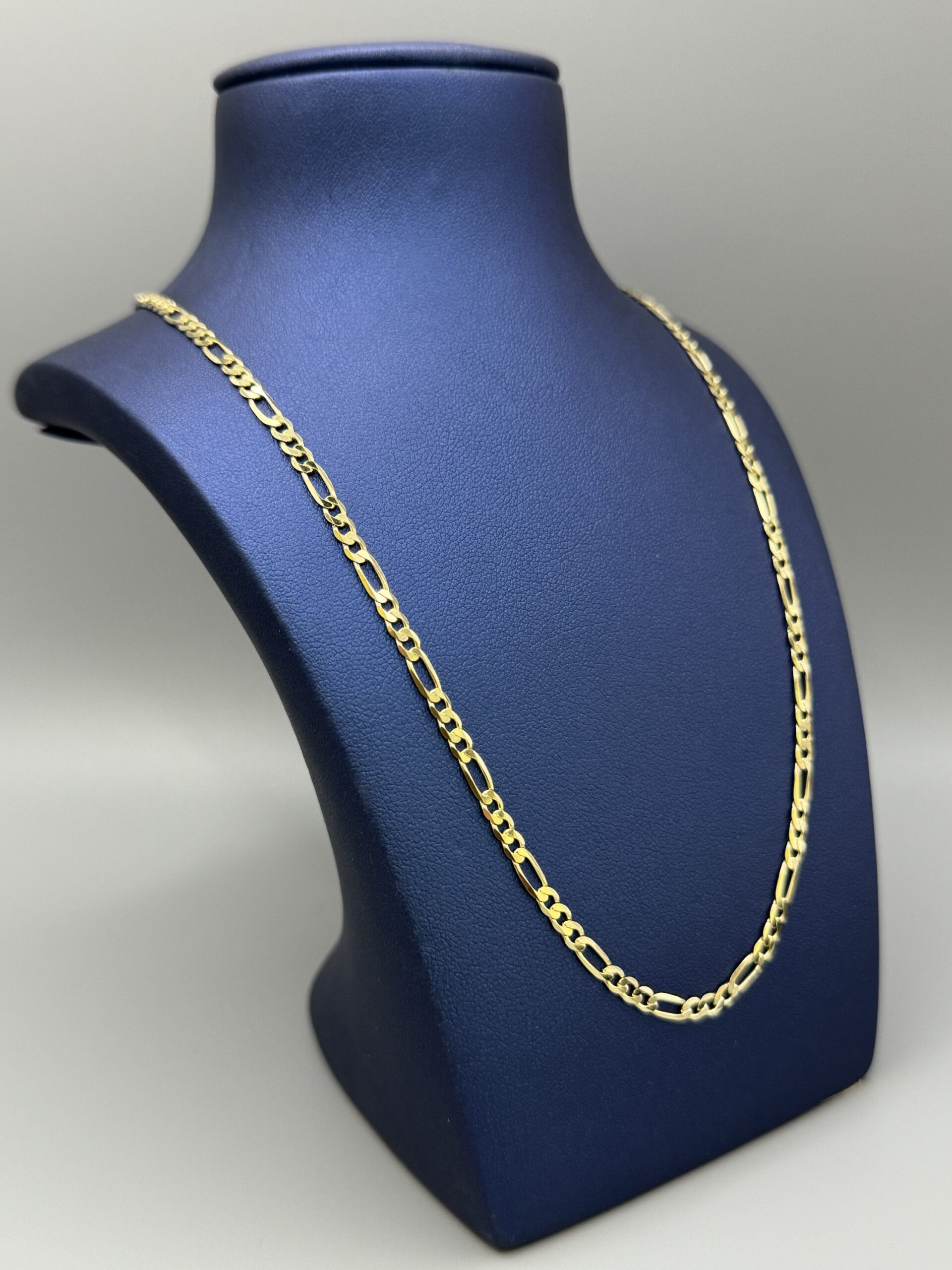 10KT Gold 4MM 18” Solid Figaro Necklace