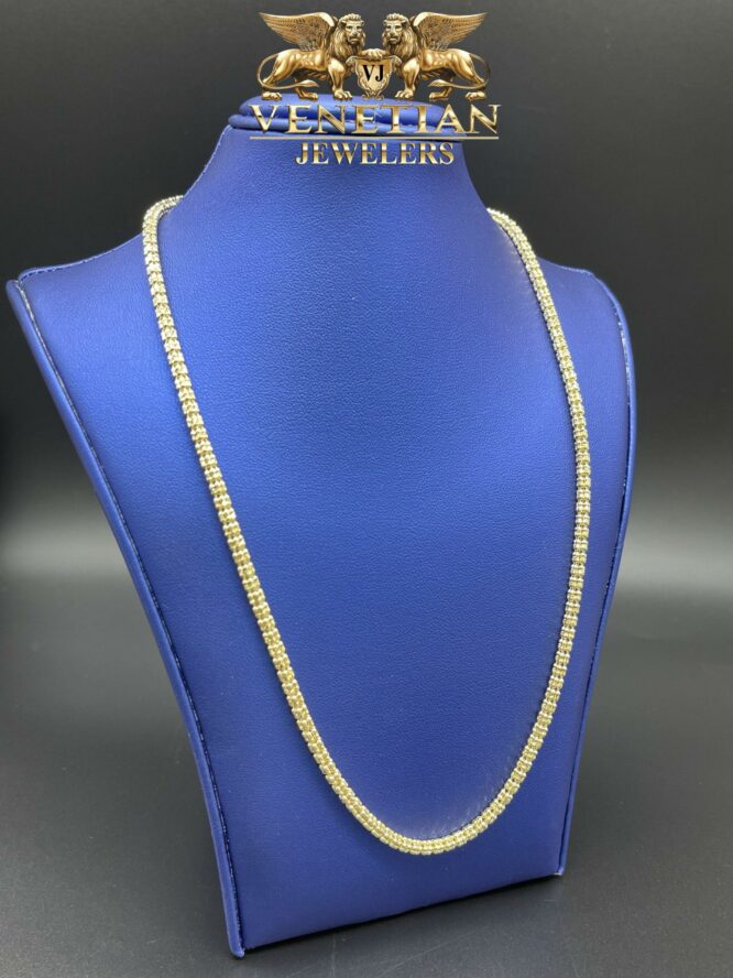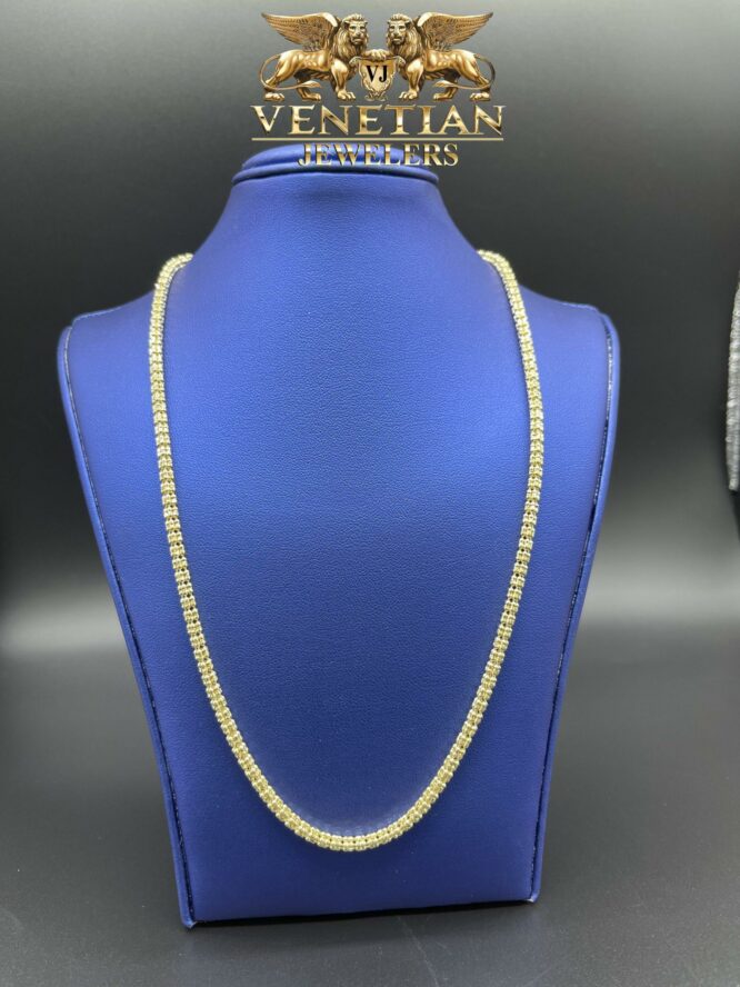 This 10Kt Ice Gold Chains is beautiful, eye-catching, Italian made chain that mimics the sparkle of a diamond when shining against a light. All of our Jewelry Products are made with 100% Precious Metals. These chains are delicate but beautiful.