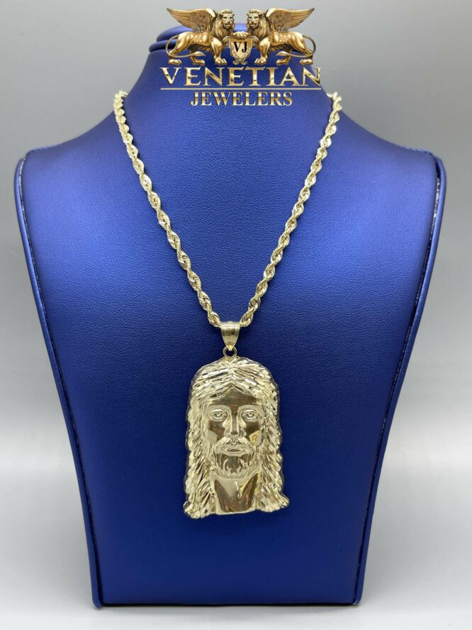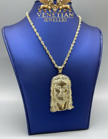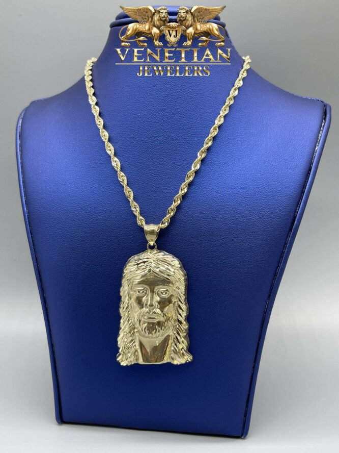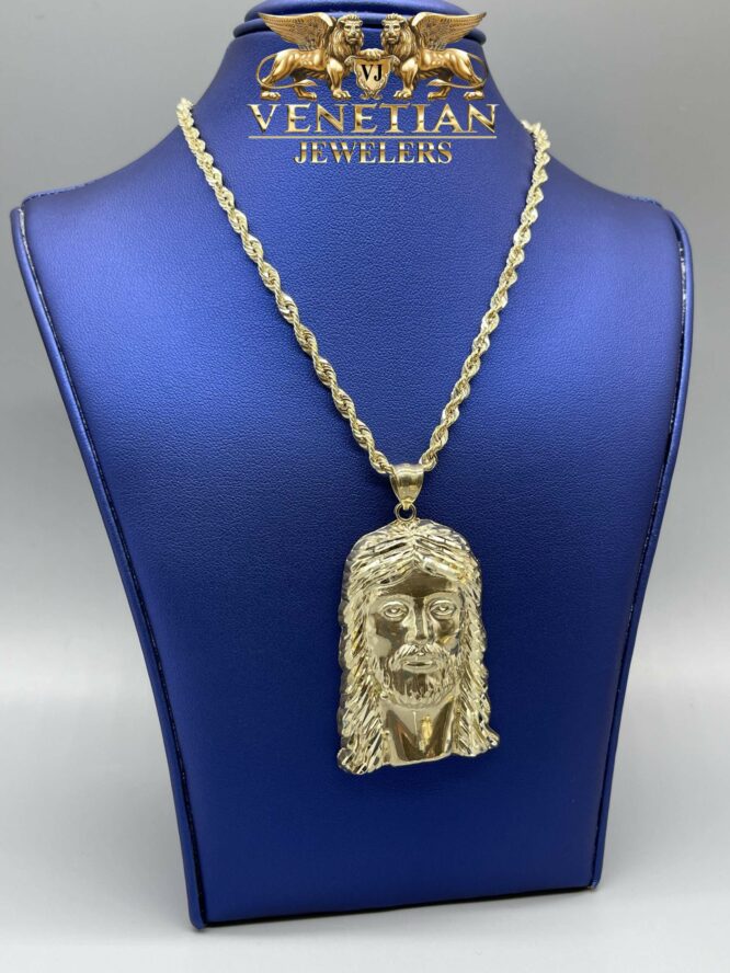10KT Gold Jesus Pendant With Rope Chain Combo Set Total Weight 15.4 Gram “24 inches Rope