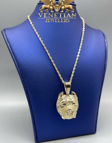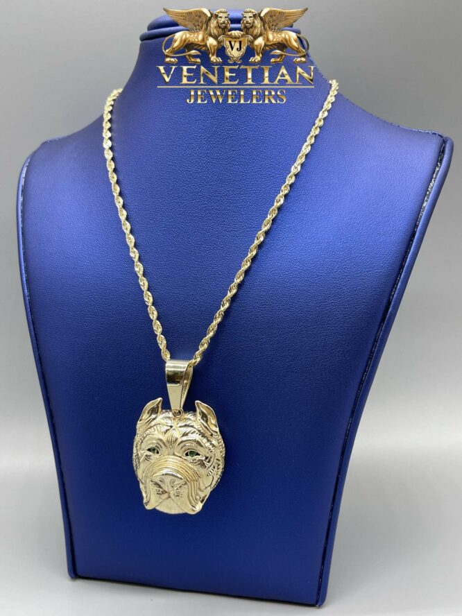 10KT Bull Dog Pendant With Green Emerald Eyes Comes With “24 Inches Rope 13.8Gram Gold