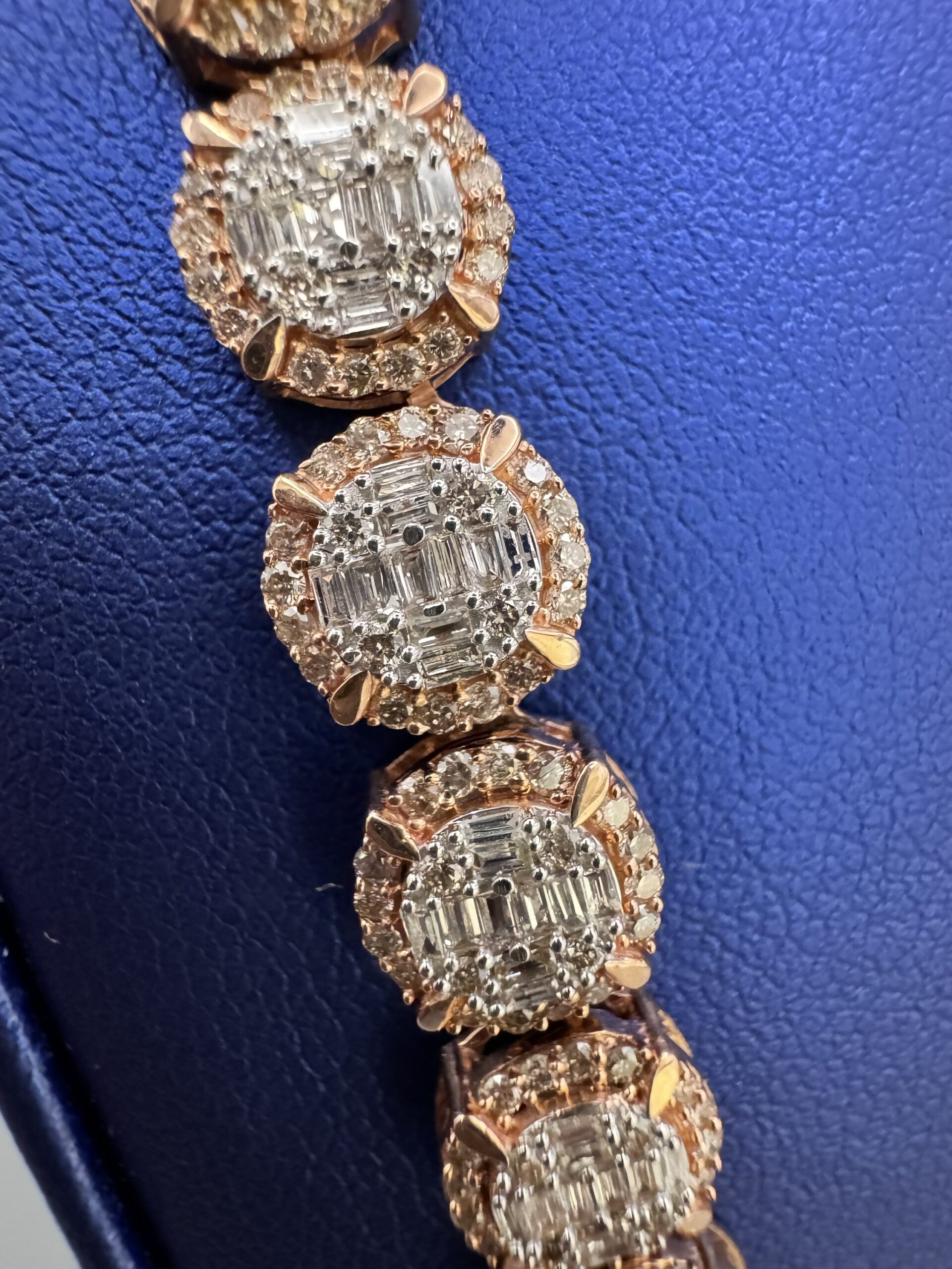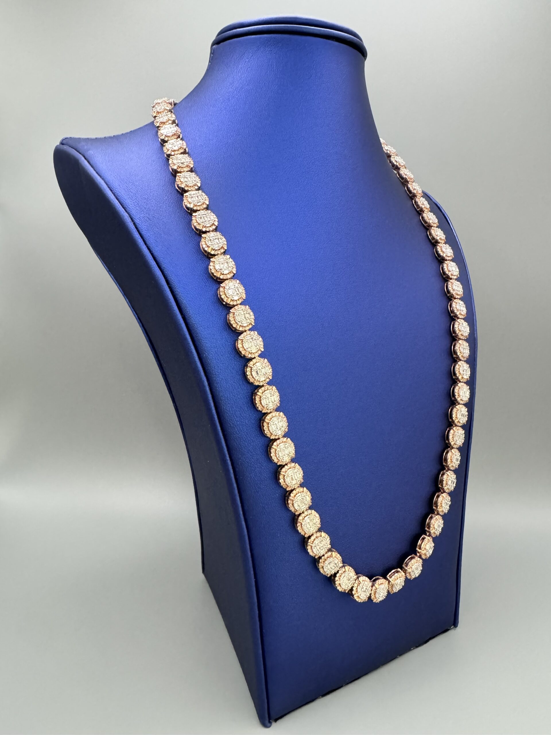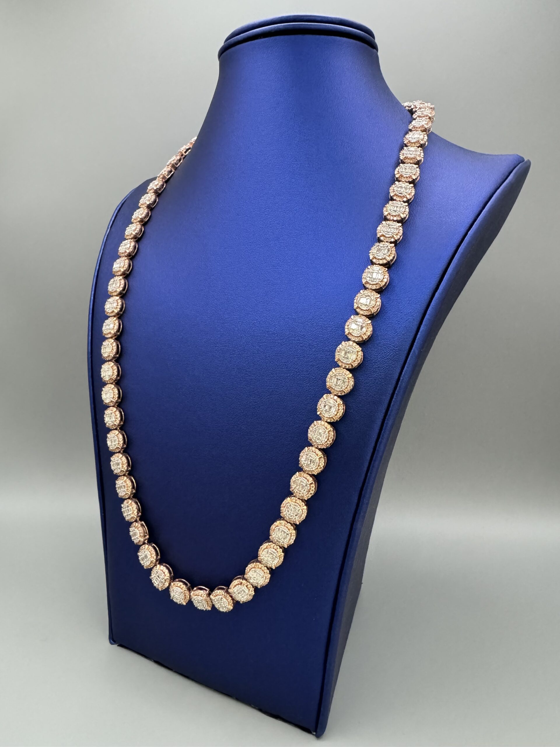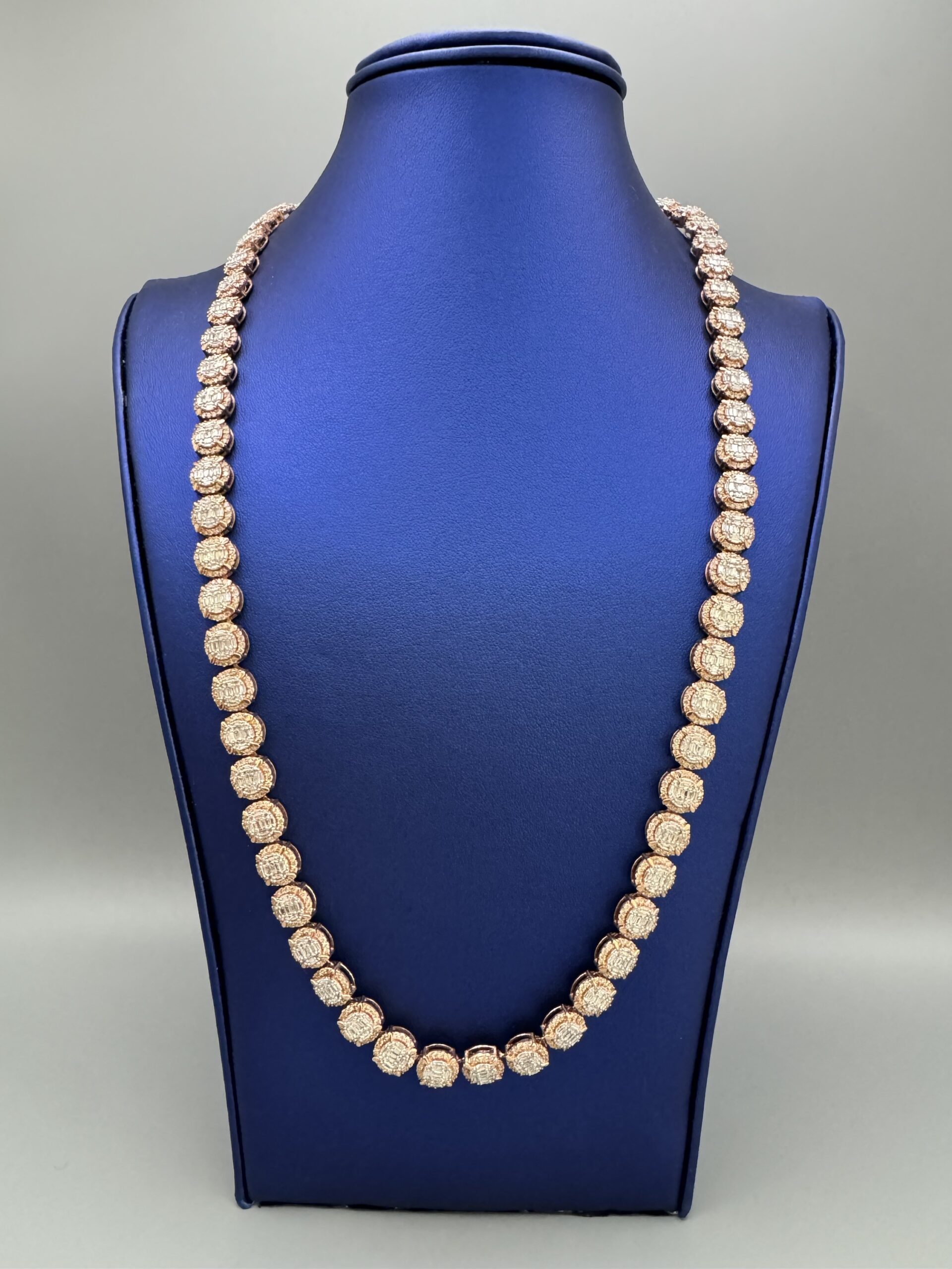 10KT R/Gold 8.5MM 15.00CT Baguette Diamond Necklace 22″ Approx Gold Weight 51.3 Gram VS Quality Diamonds