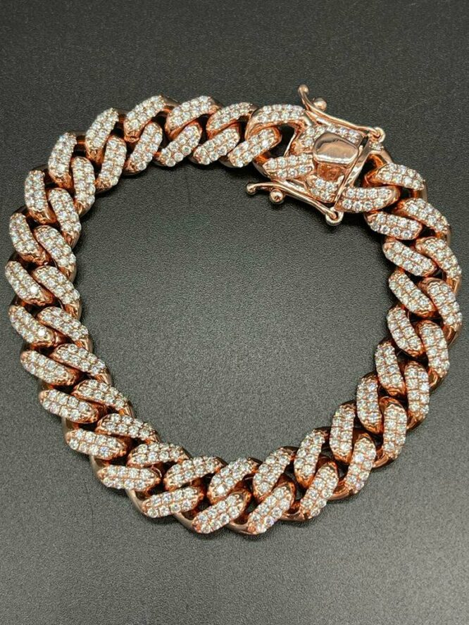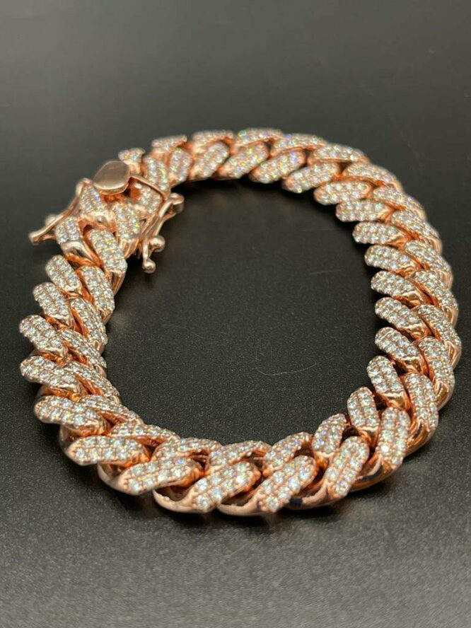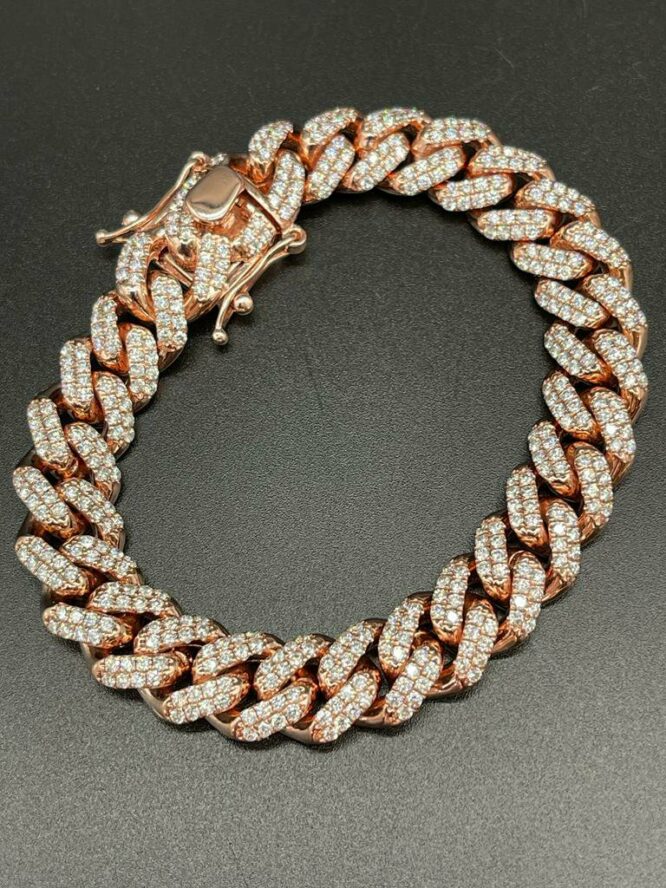 10KT Solid Rose Gold 12MM MiamiCuban 11.95CT VS Diamonds 8.5″ Bracelet Approx Gold Weight 65.12 Grams