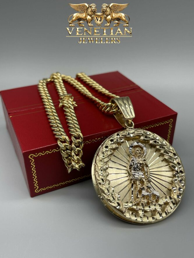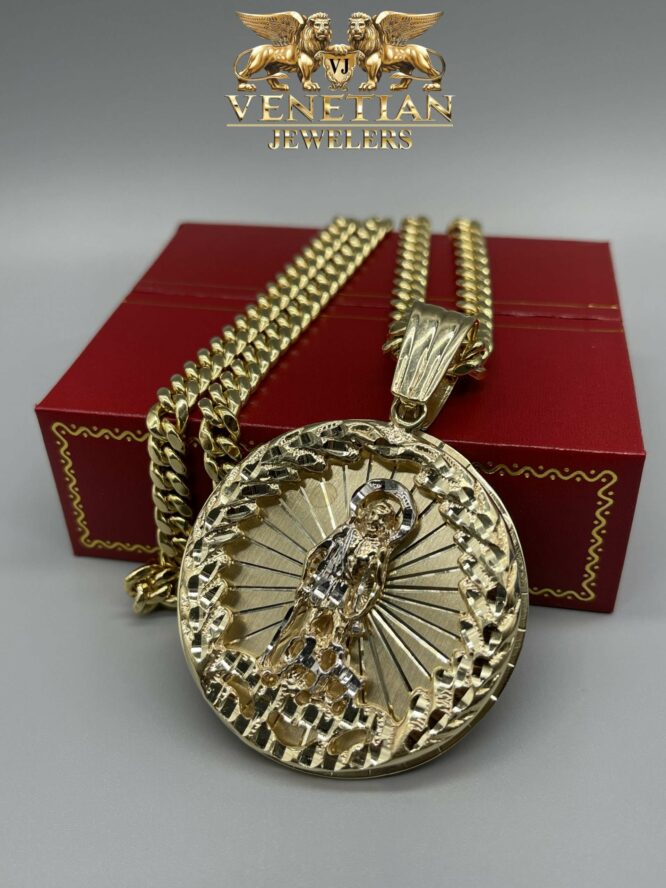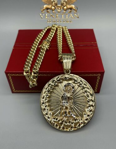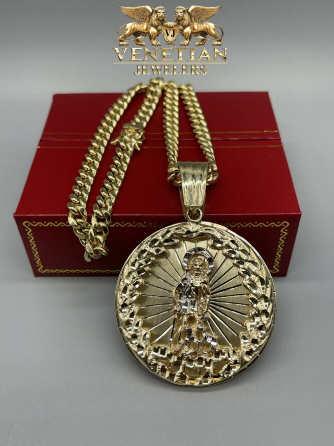 10KT Solid Gold Saint Lazaro Approx Weight 34.10Grams With “20 Miami Cuban Chain 8MM Approx Weight 26.70Grams Gold