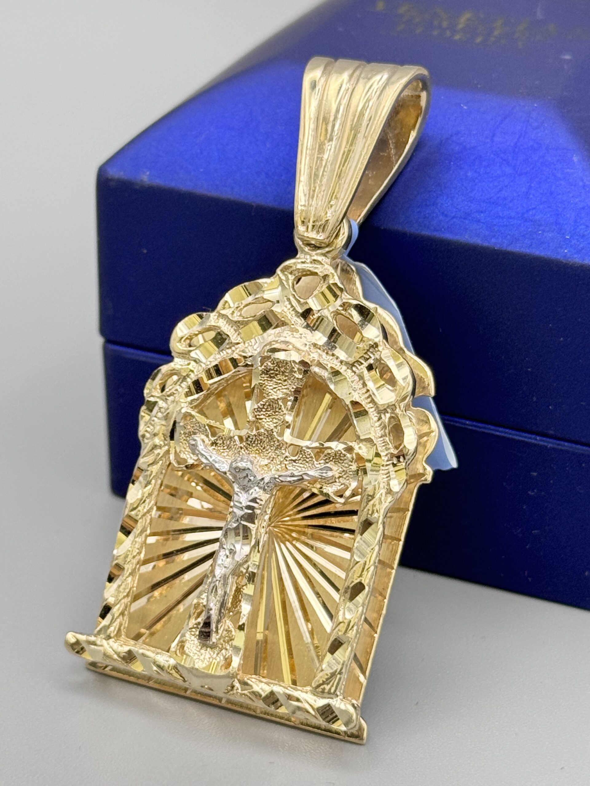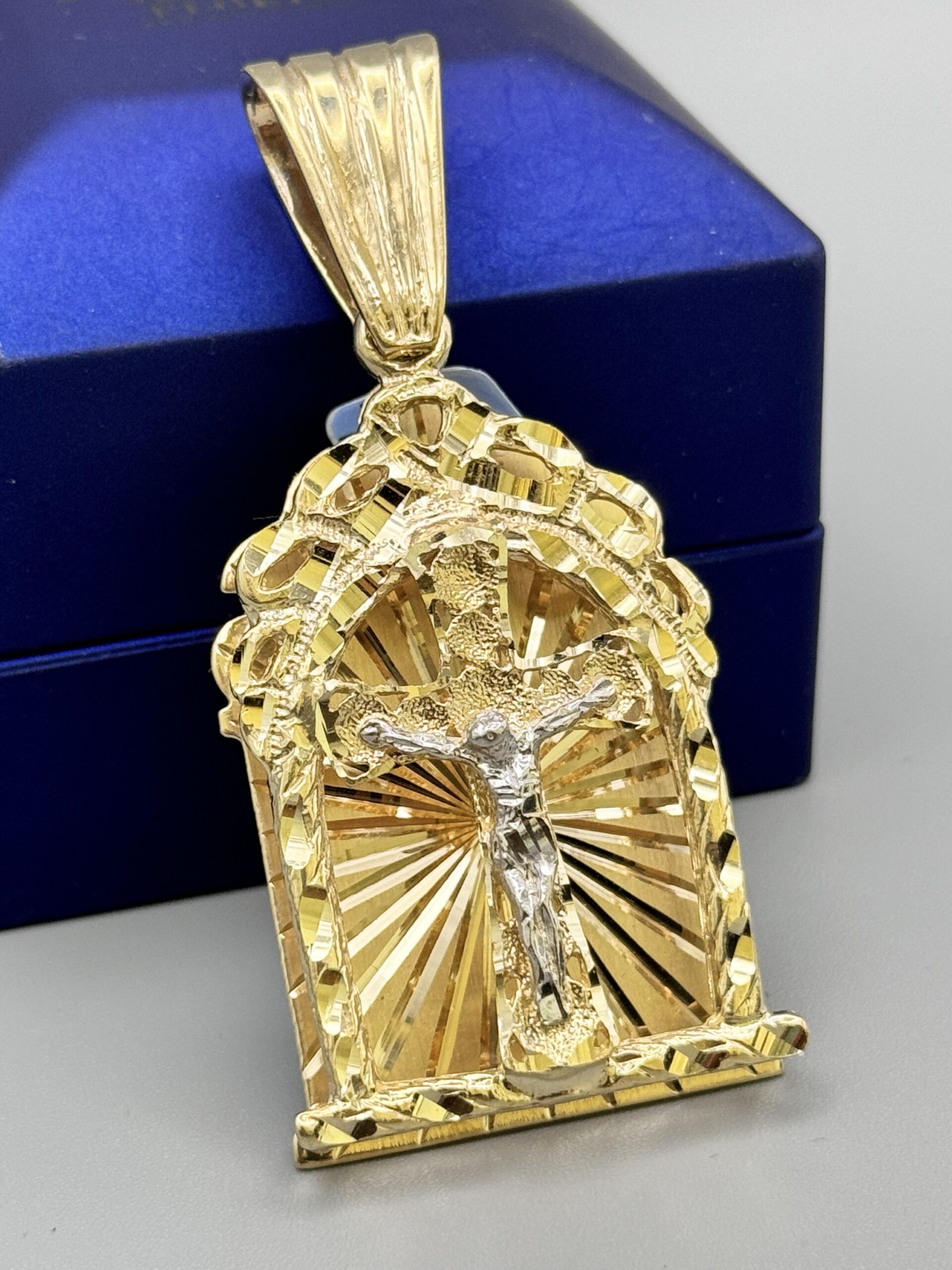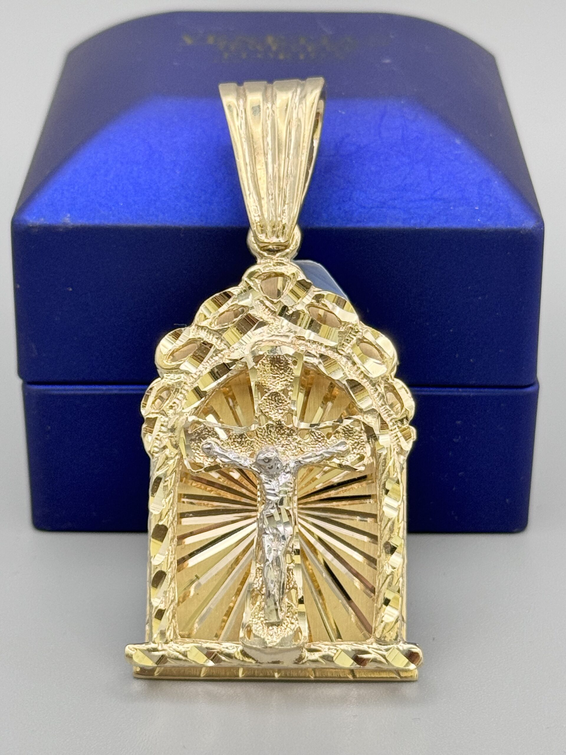 10KT Solid Gold 3D Cross Pendant House Shape Pendant 2.5″ Tall By 1.25″ Wide Solid Back Approx Gold Weight 21.0 Gram
