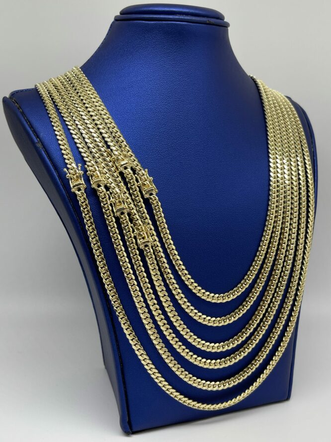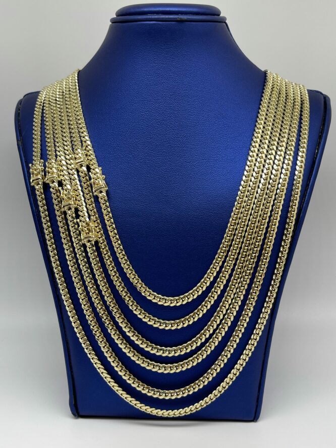 Elevate your style with our 10KT Solid Gold Miami Cuban Necklace, featuring an Italian finish and a secure box lock. Available in lengths of 20″, 22″, and 24″, it’s the perfect accessory for any occasion.