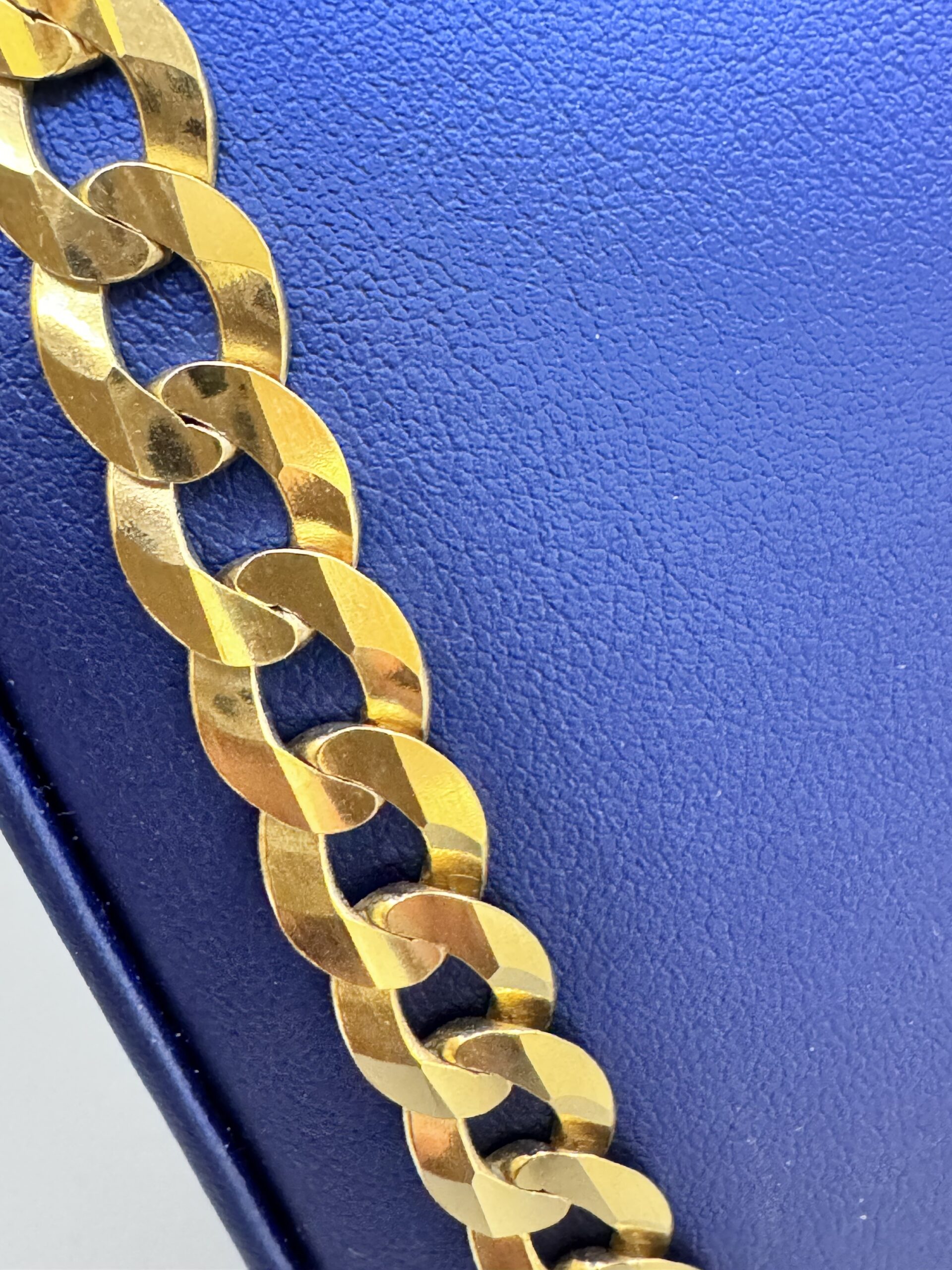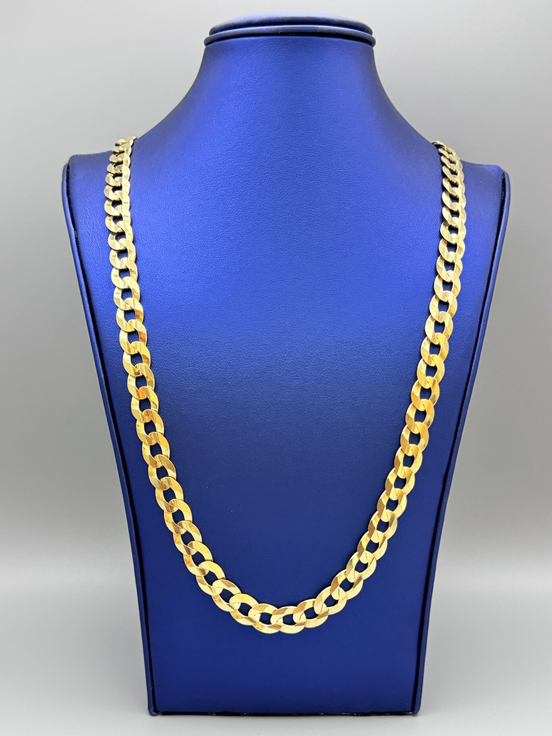 Elevate your style with our 10KT Solid Gold Italian CurbLink chain. At 10MM wide and 26” long, it boasts a substantial gold weight of 56 grams, perfect for everyday elegance.