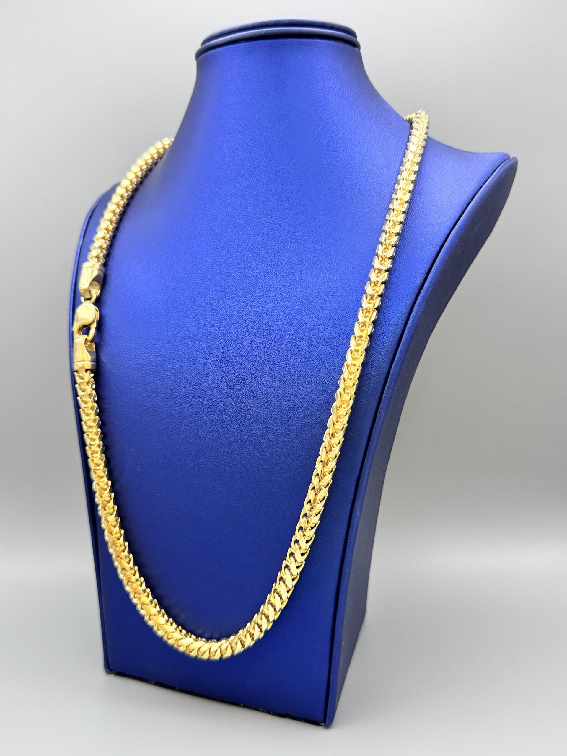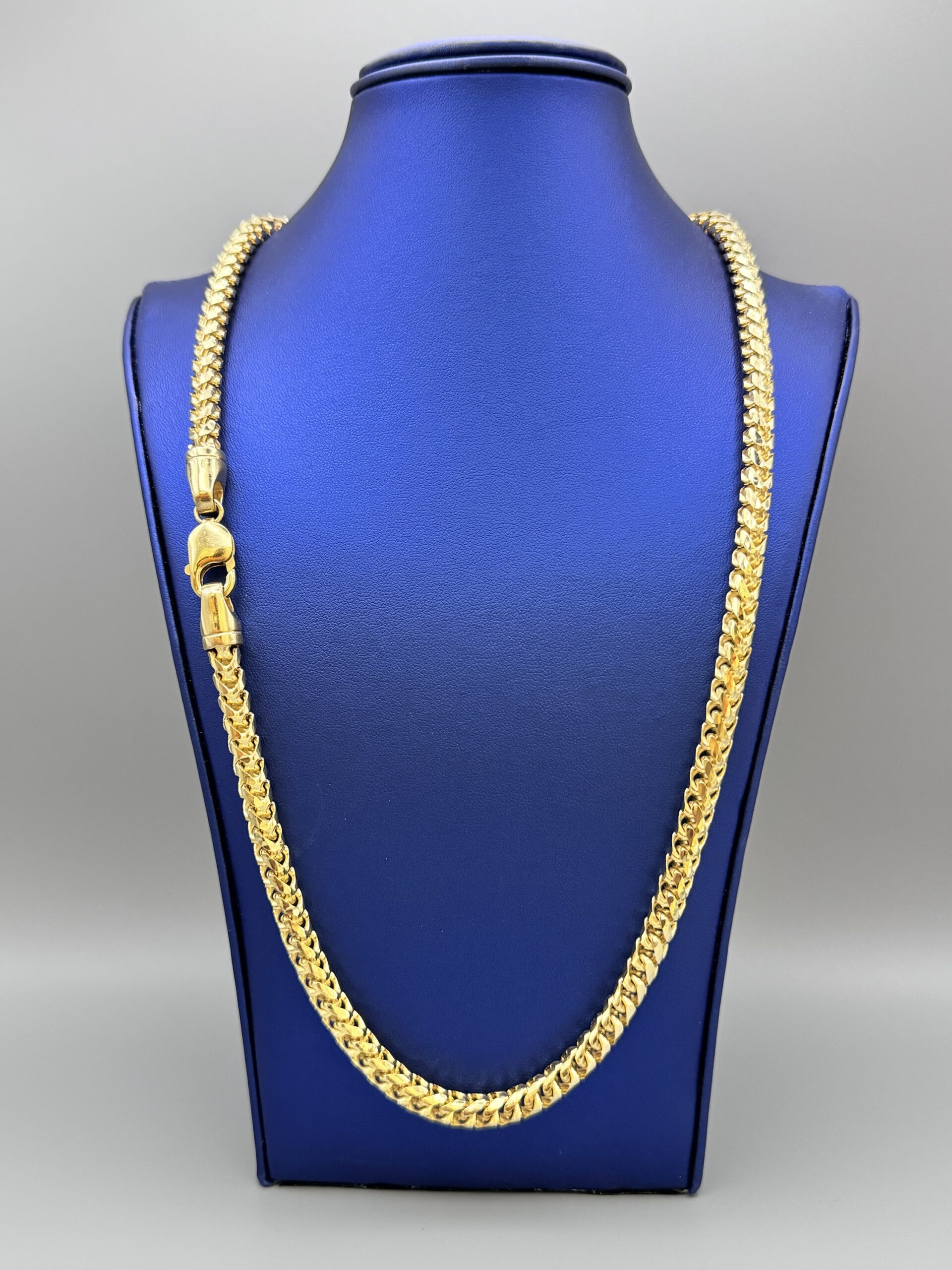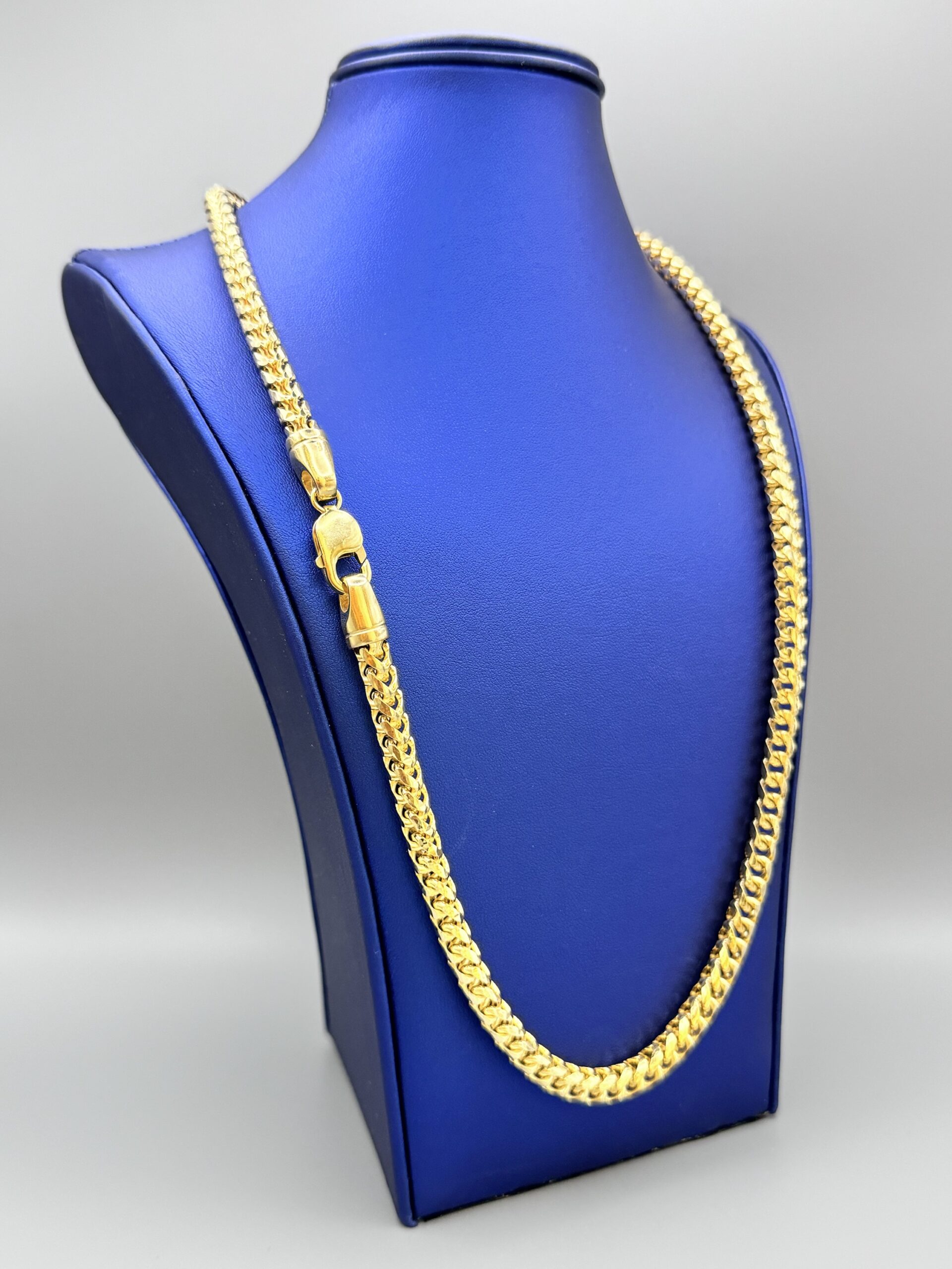 Discover elegance with our 10KT solid gold Italian round Franco chain. Measuring 7MM and 24” long, this exclusive piece weighs approximately 112.5 grams—an invaluable investment for style and durability.