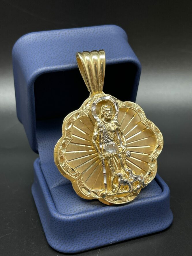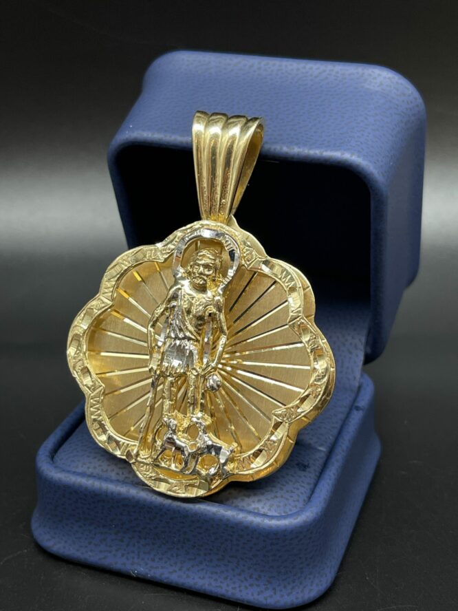 10KT Solid Gold St.Lazaro Pendant 2.75 Inches 2 Inches Wide Approx Gold Weight 30.22 Gram
