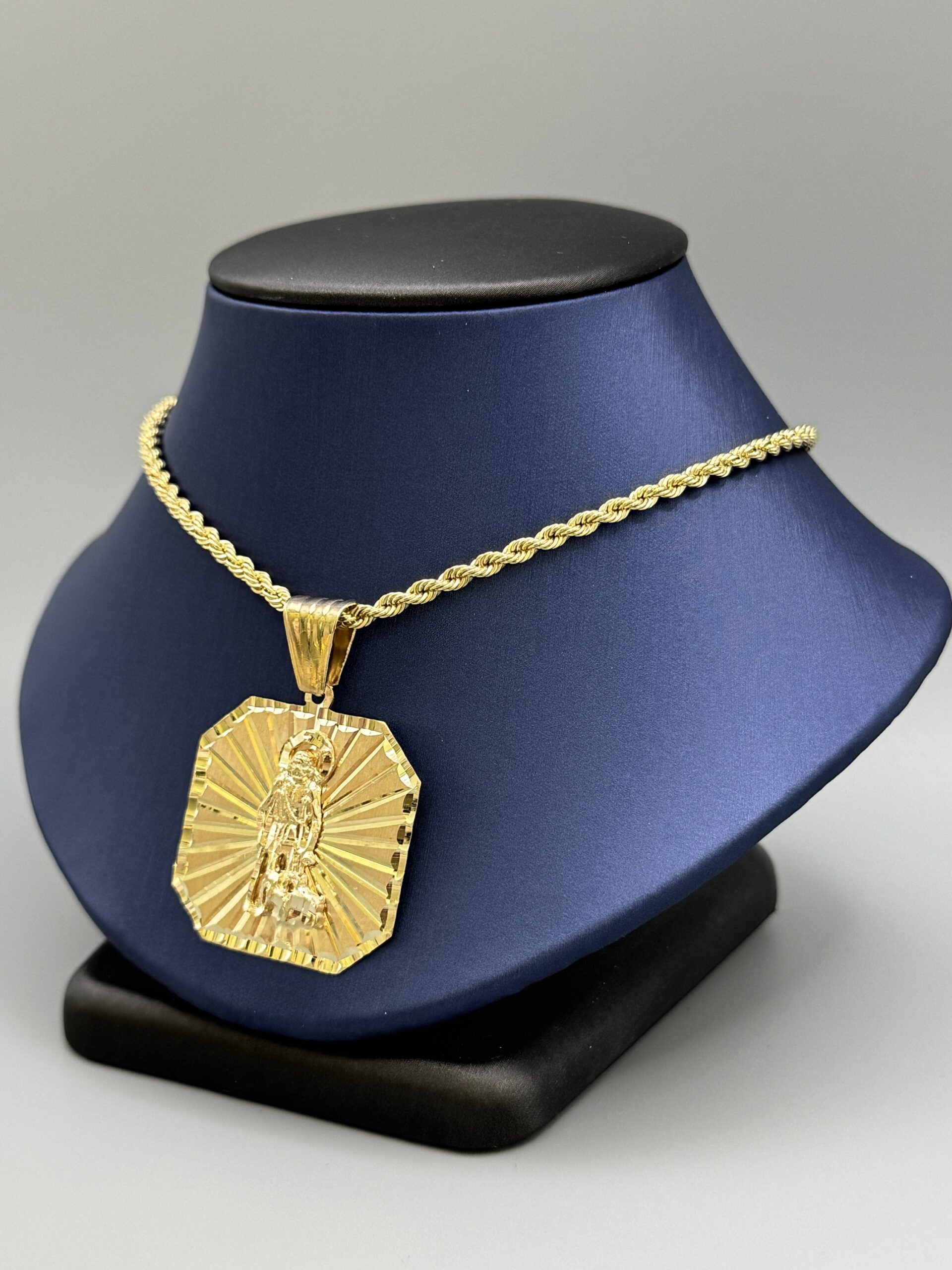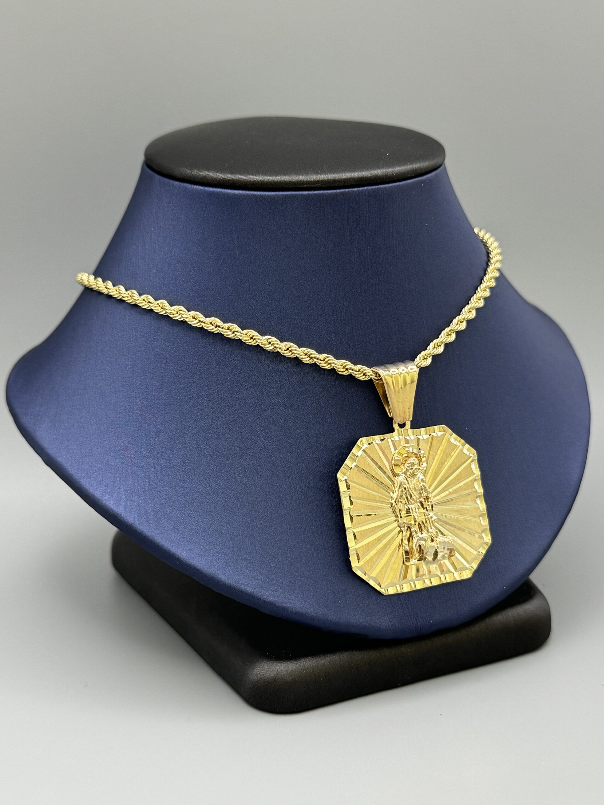 Elevate your style with this exquisite 10KT Solid Gold St. Lazaro Pendant Combo Set. Featuring a 22″ rope necklace alongside a beautifully detailed pendant, it’s perfect for any occasion.