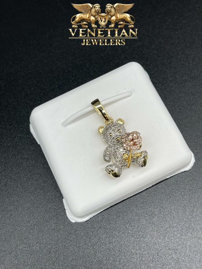 A refreshing teddy bear with a heart diamond pendant for your gorgeous loved one. Expertly crafted in cool 10K yellow gold. An eye-catching look, this pendant has 0.38 carat diamonds, and a polished shine. A look she is certain to adore. Light weight and gorgeous.