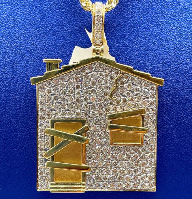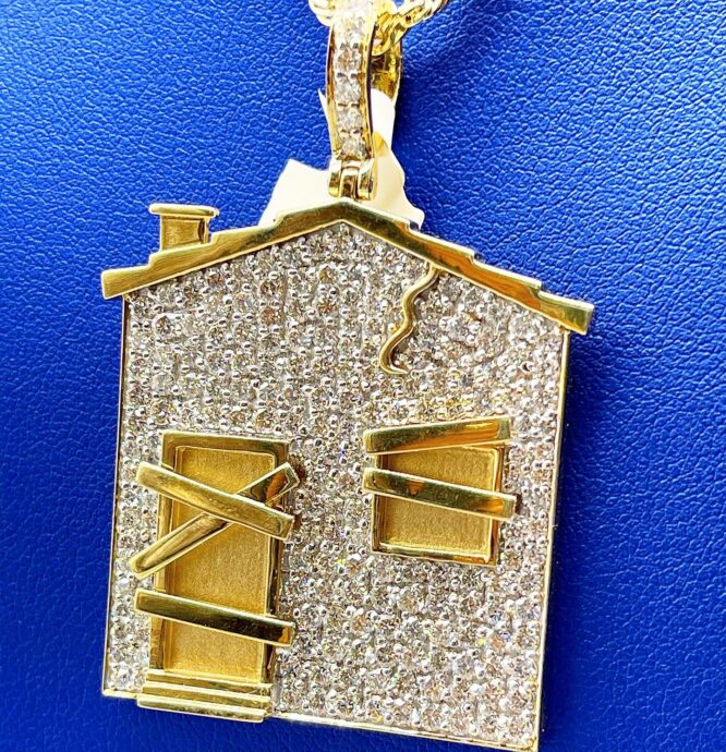 10KT Custom Made TrapHouse Solid Gold With handSet HoneyComb 5.25CT