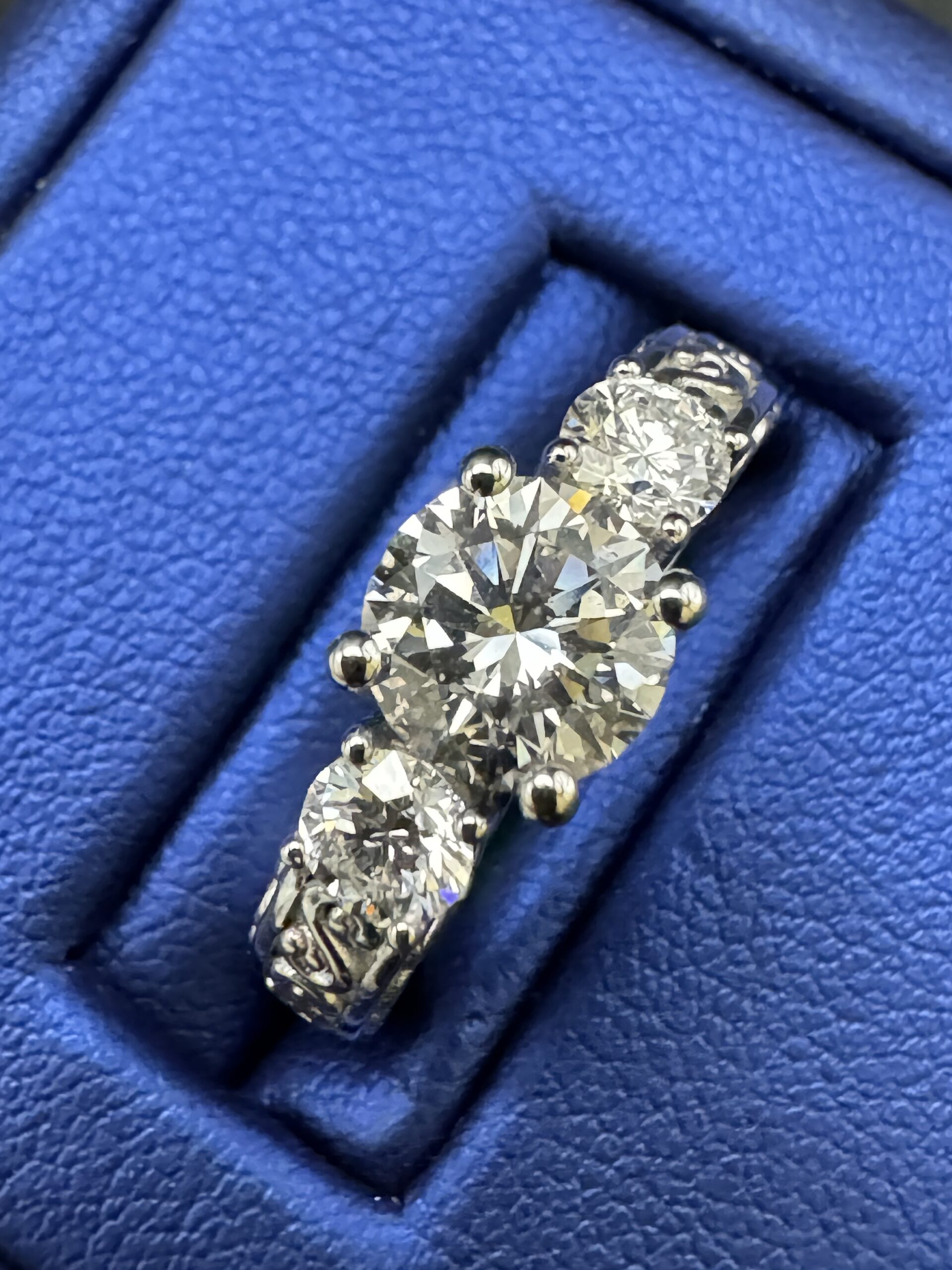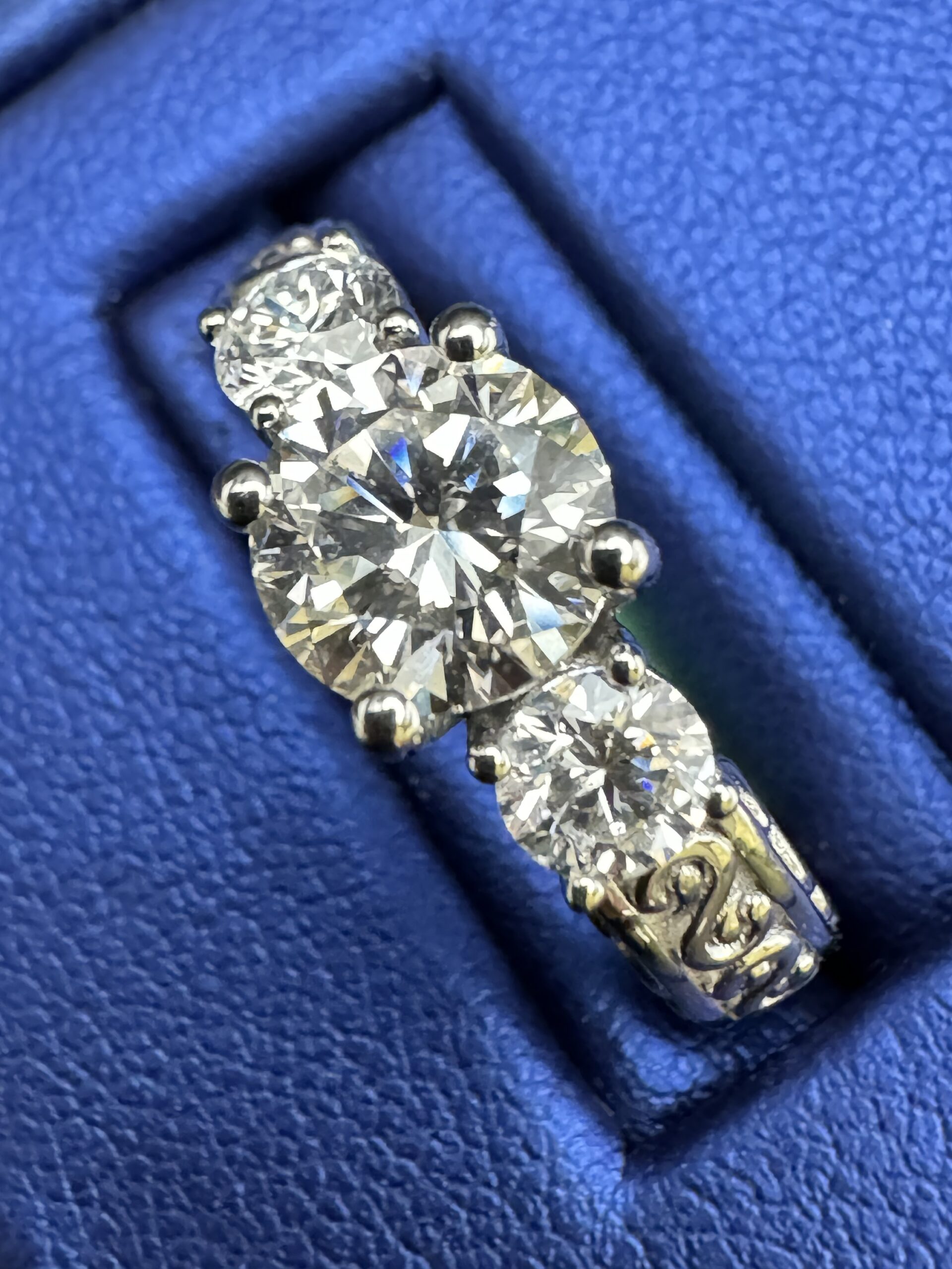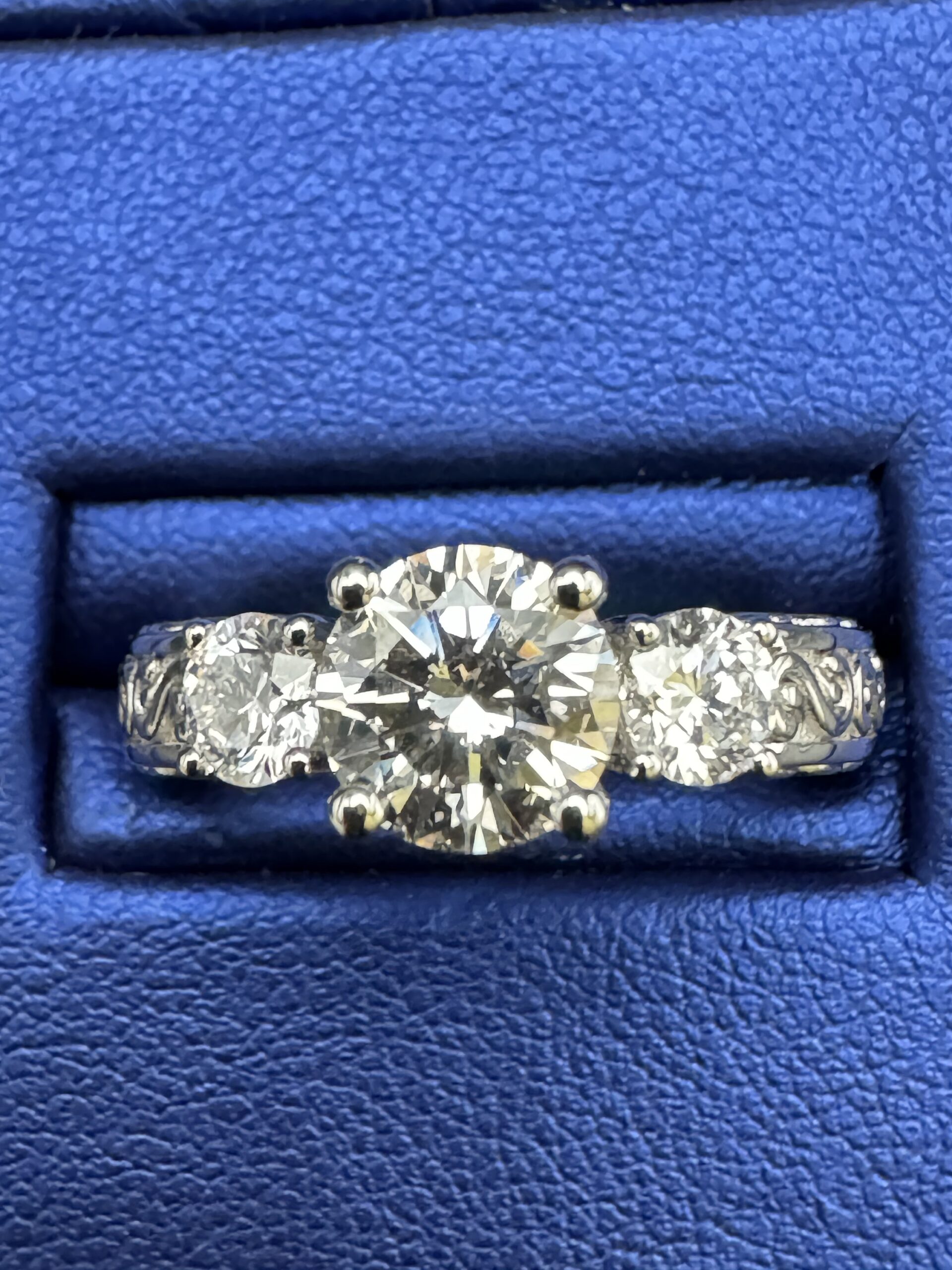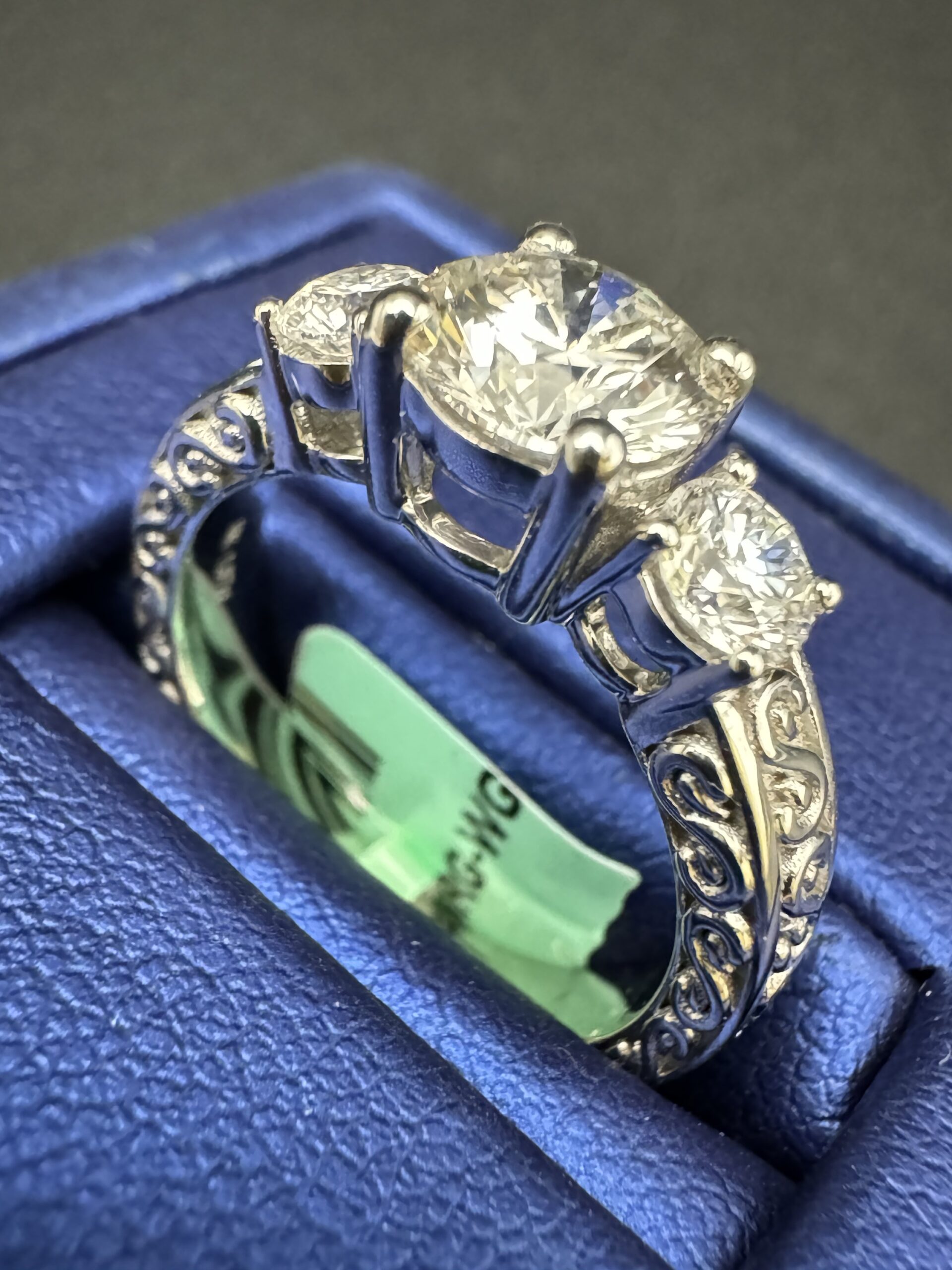 10KT W/Gold 1.57CT LabGrown Diamond Ring Present Past Future RoundCut Size 7 Approx Gold Weight 5.4 Gram 7MM 4MM Side VVs Clarity F Color Traditional Look Sizing Available