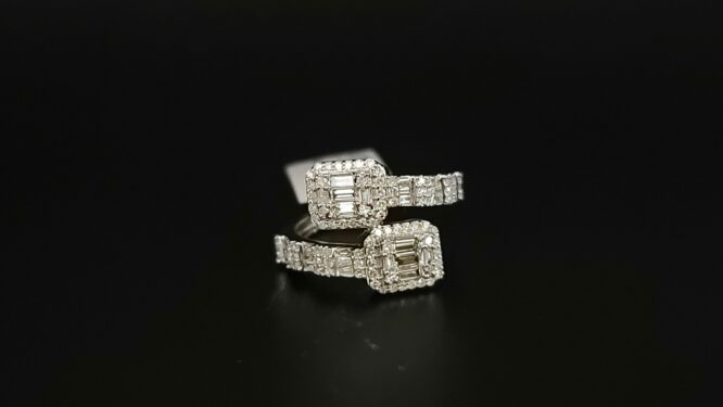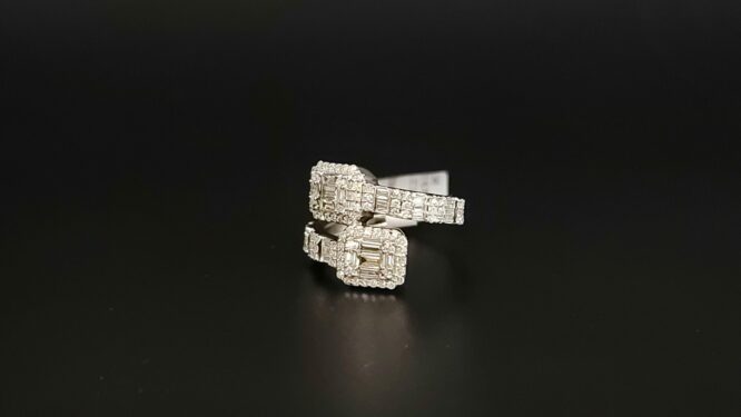 10KT White Gold 1.35CT Baguette With Round Cut Diamonds Size 7 Top Head Width 15MM Approx Gold Weight 3.48 Grams Custom Finish Excellent Clarity VS/SI Color F-G