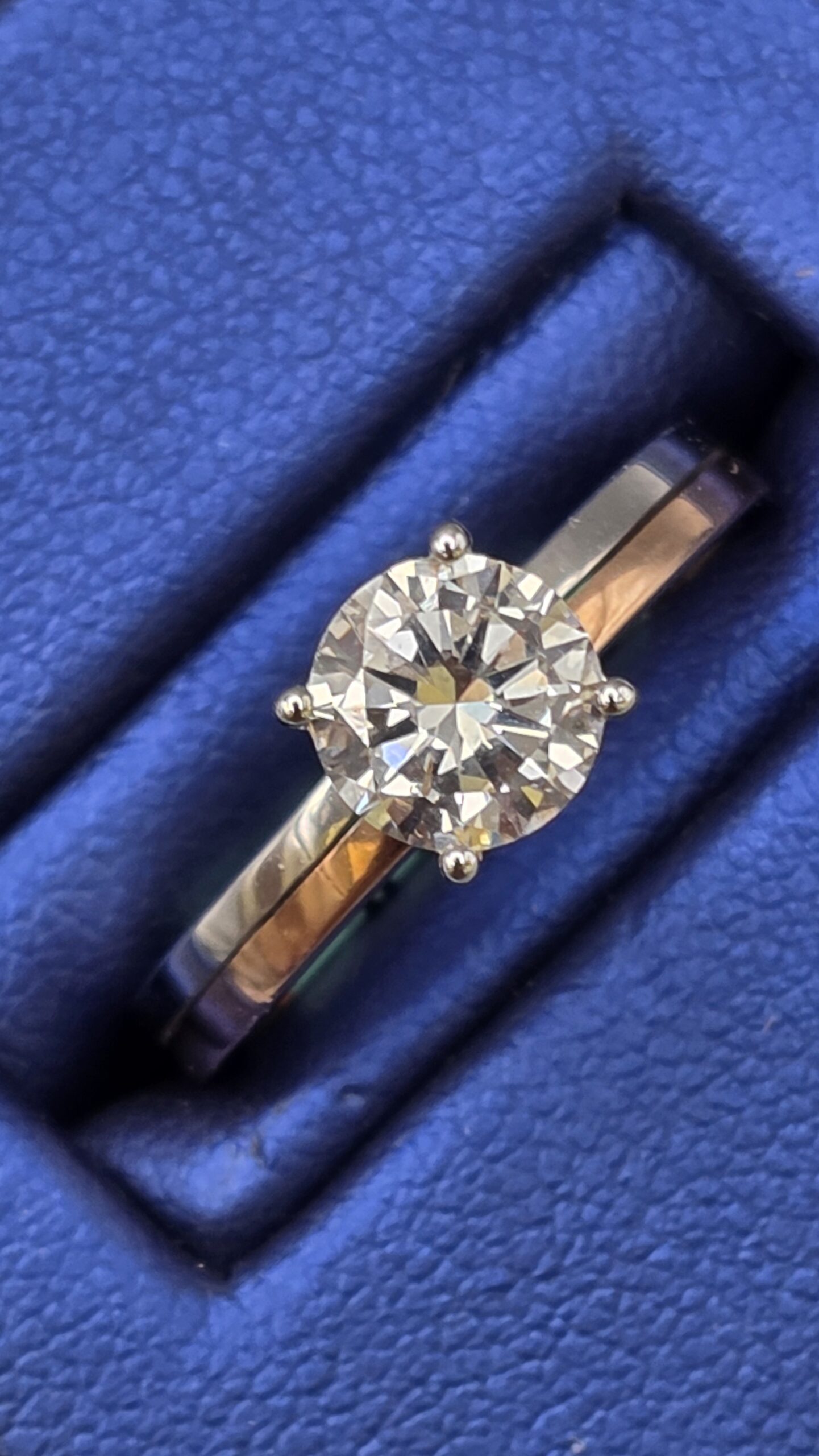 10KT WR/Gold 1.08CT Xmas Special Deal Roundcut Solitaire Wedding Ring 8.5MM Width Of The Solitaire Size 7 Approx Gold Weight 3.1 Gram