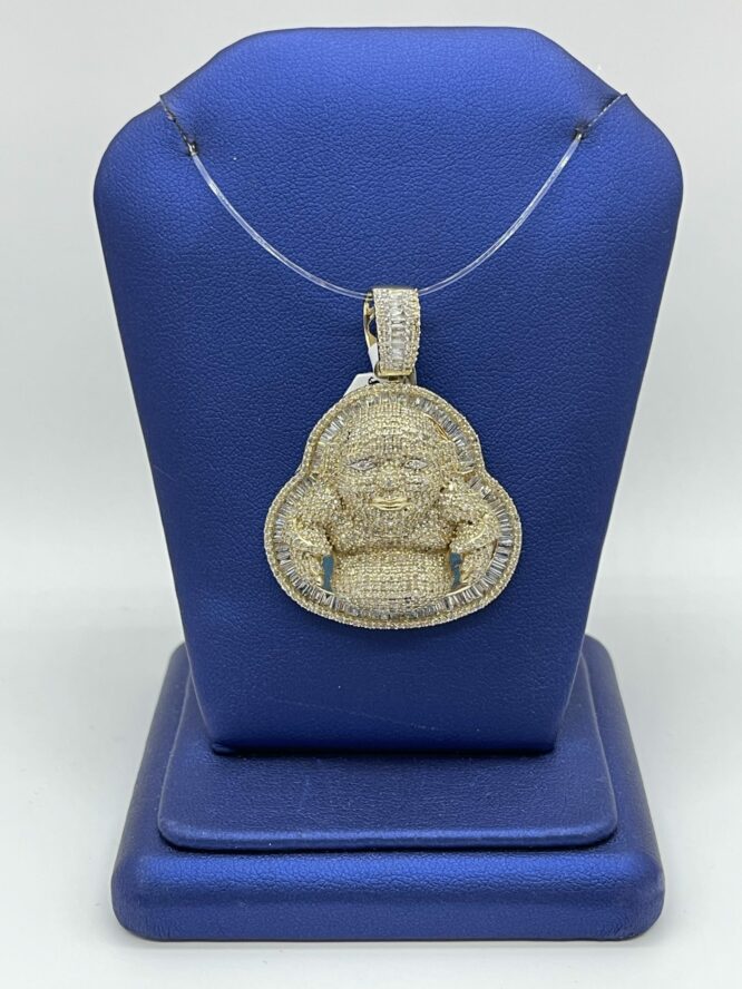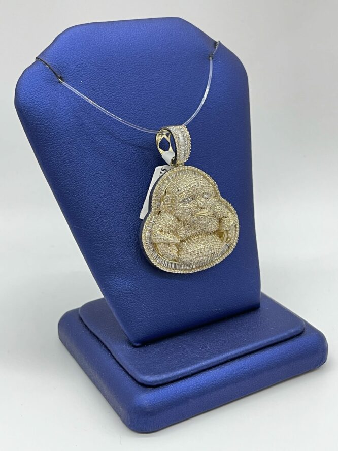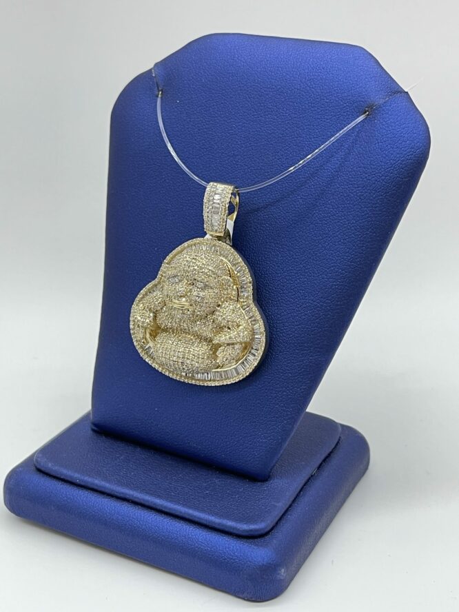 10KT Gold 3.85CT Diamond Buddah Pendant Fully Icedout With Baguette And Round Cut Diamonds