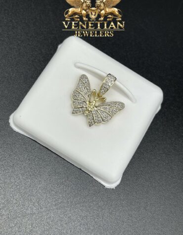 This listing is for a graceful Butterfly pendant crafted in 10k Yellow Gold. The dainty pendant is fully encrusted with 1/2 ct of Round diamonds in a pave setting. With a lustrous finish and brilliant diamonds, the pendant perfectly celebrates life’s beauty.
