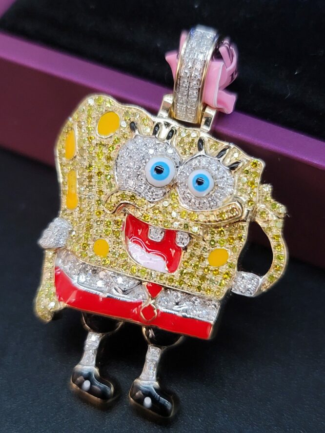 10KY Gold 0.80CT Diamond Pendant With Enamel Colors With Canary Diamonds 1.5″ Tall 1.25″ Wide Approx Gold Weight 10.31 Grams