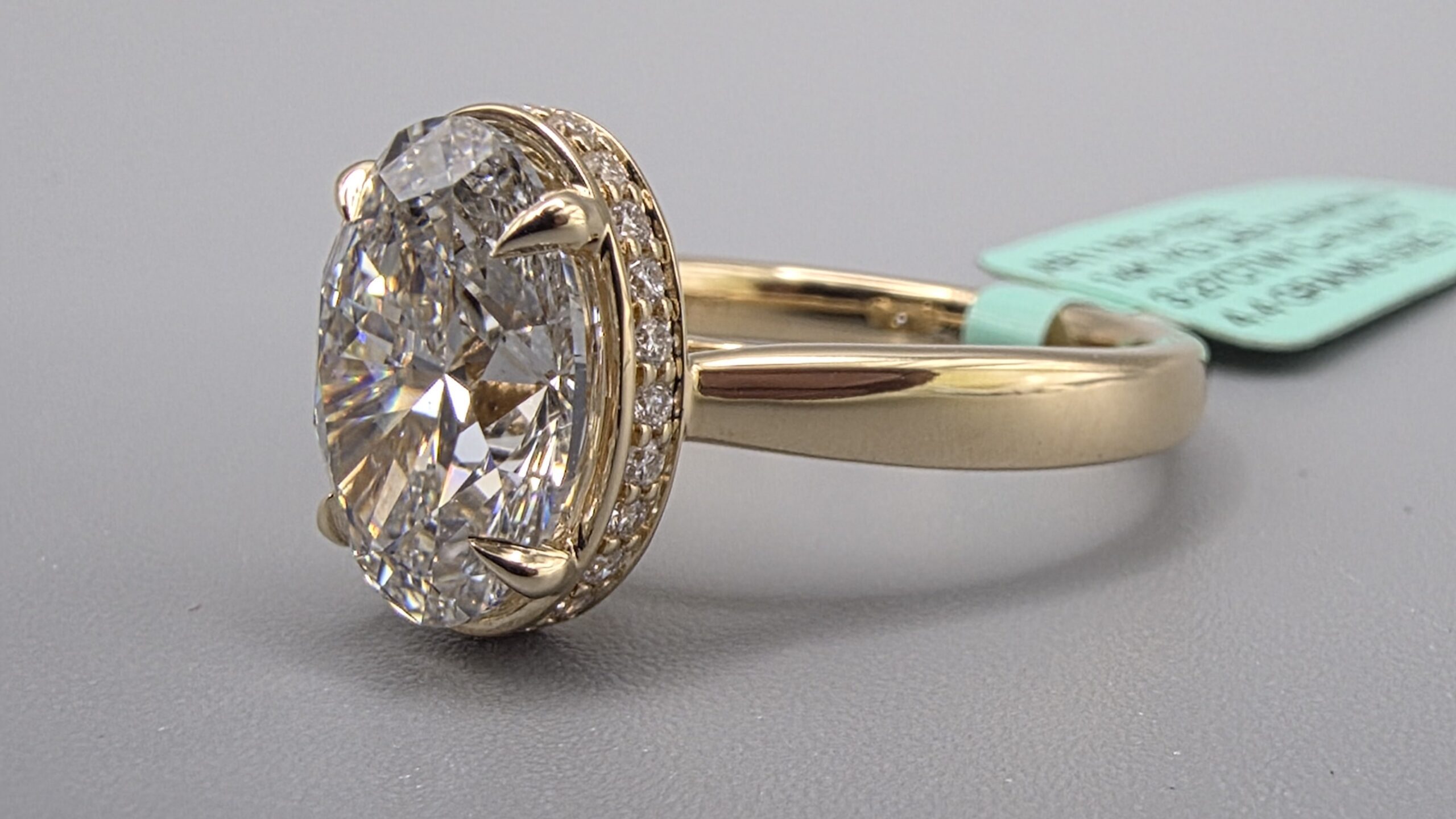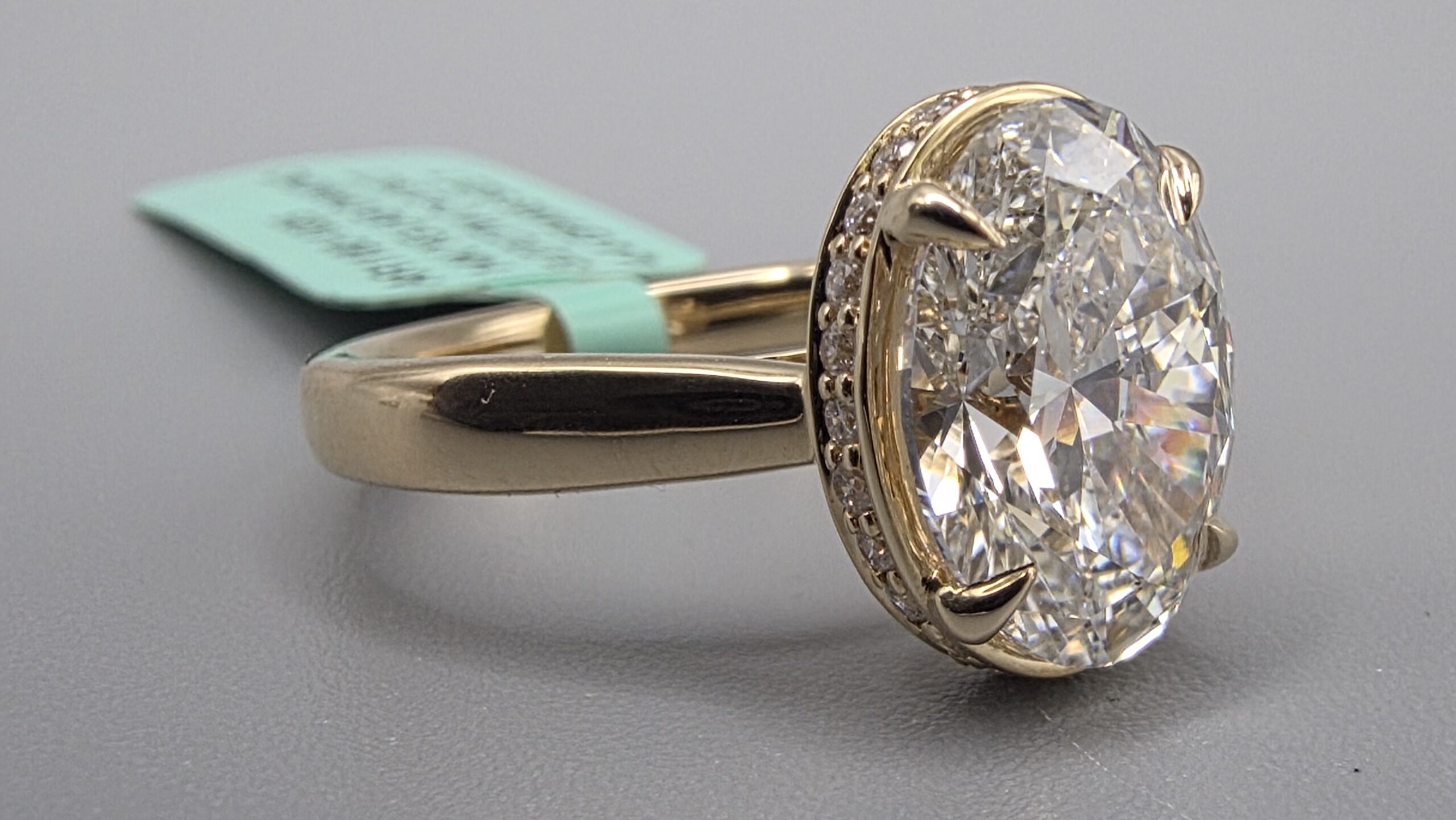 Shine bright with this stunning 14K yellow gold ring featuring a 3.09CT oval solitaire diamond and a total of 3.27CT brilliance. Perfect for any size 7 finger and weighs 4.4 grams of pure elegance!