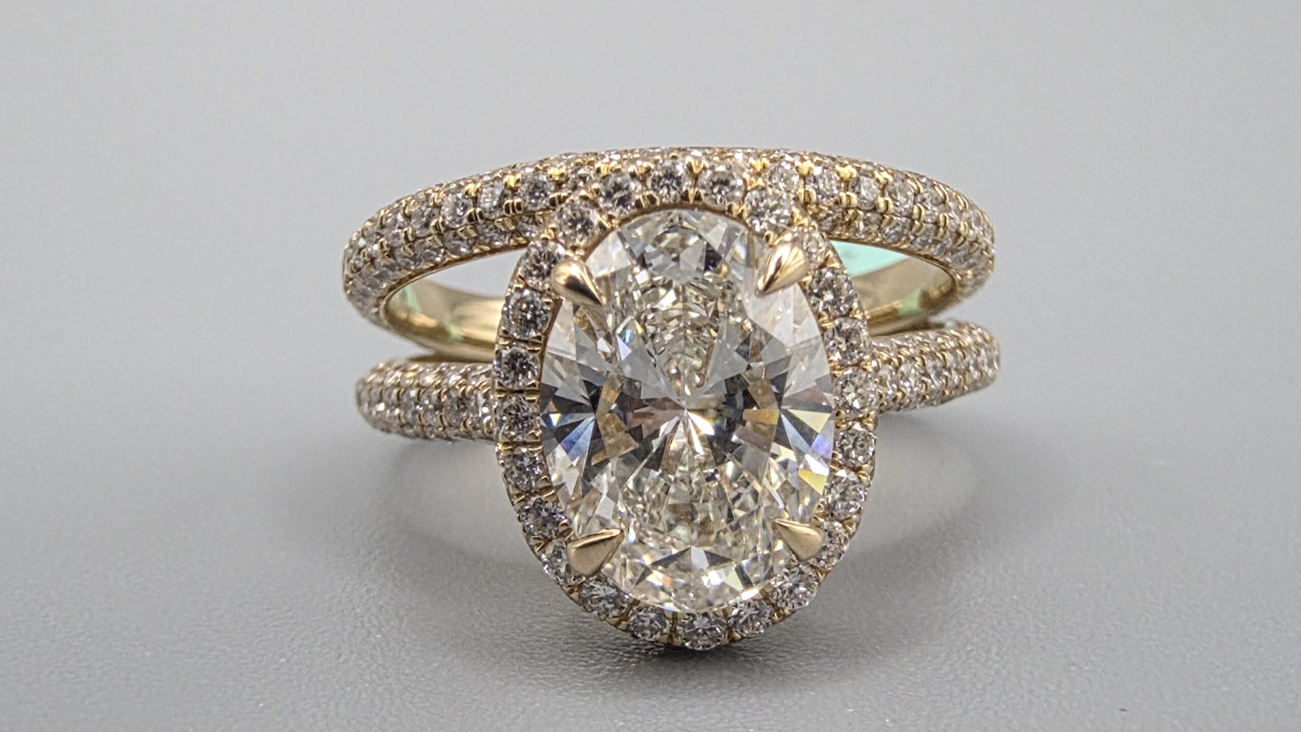 14K YGold 3.76CT LG Diamond Bridal Ring 2.08CT Center Oval Solitaire Size 7 Approx Gold Weight 5.9 Grams