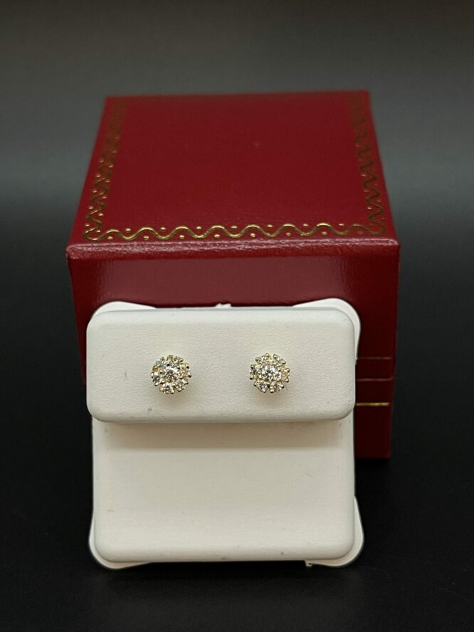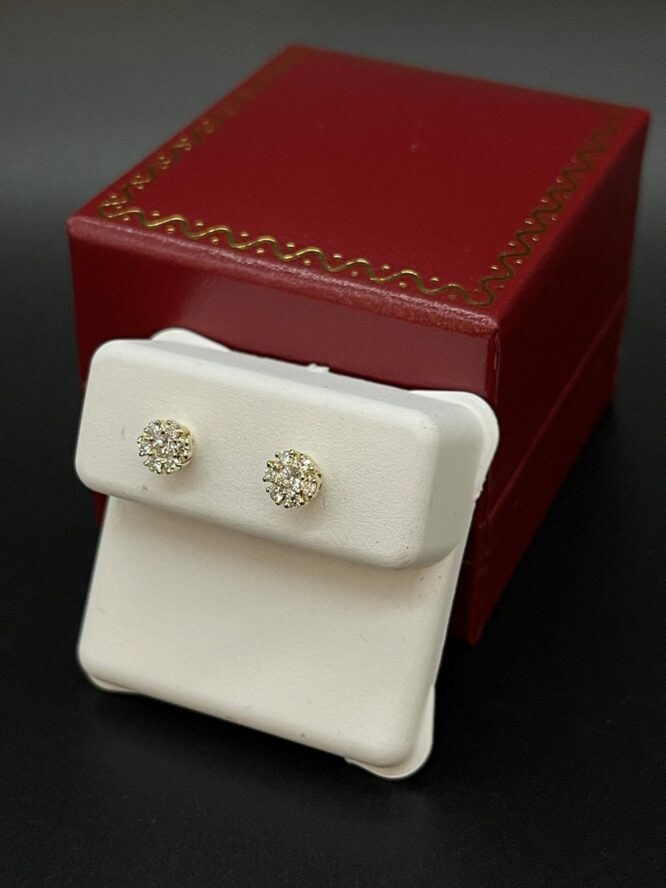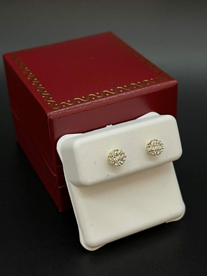 14KT 0.25CT Y/G Flower Cut VS/SI- F/G Color Diamond Earrings With Screw Backs