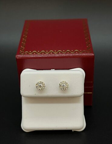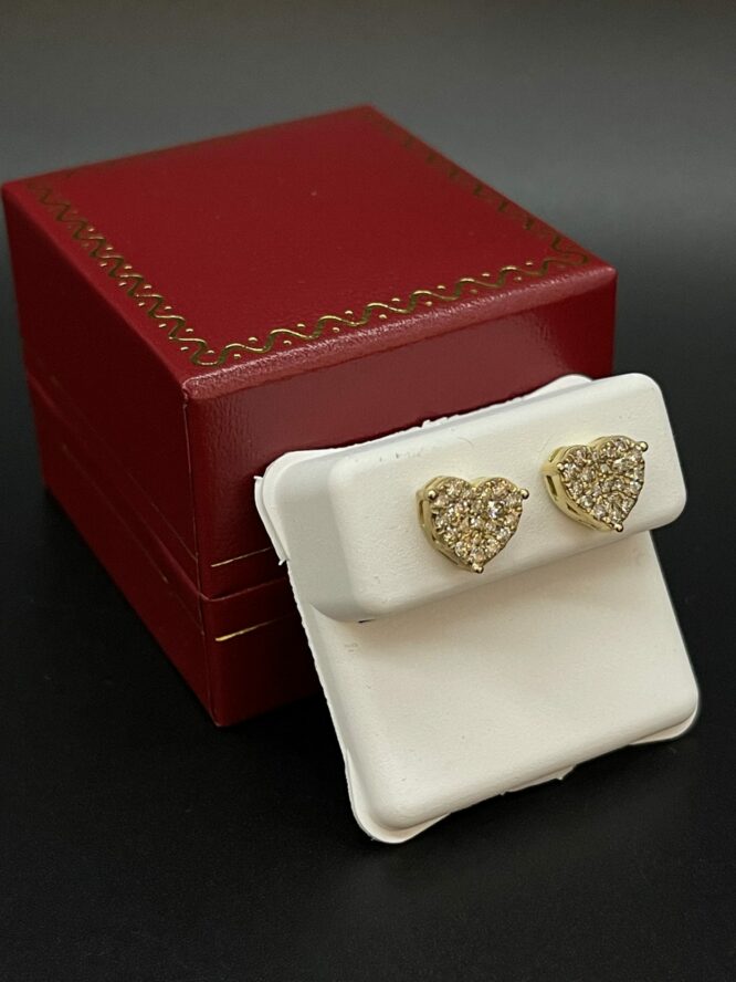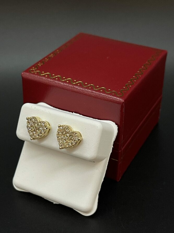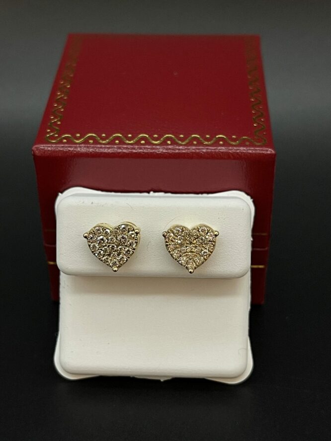 14Kt 0.48CT Y/G Heart Diamond Earrings Screw Back