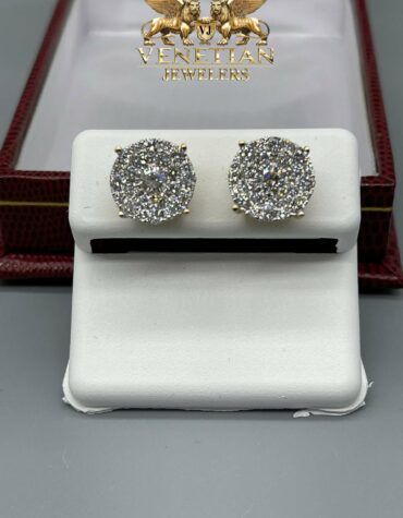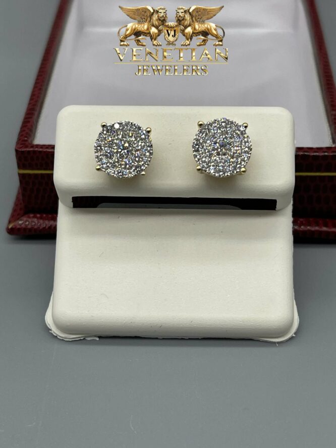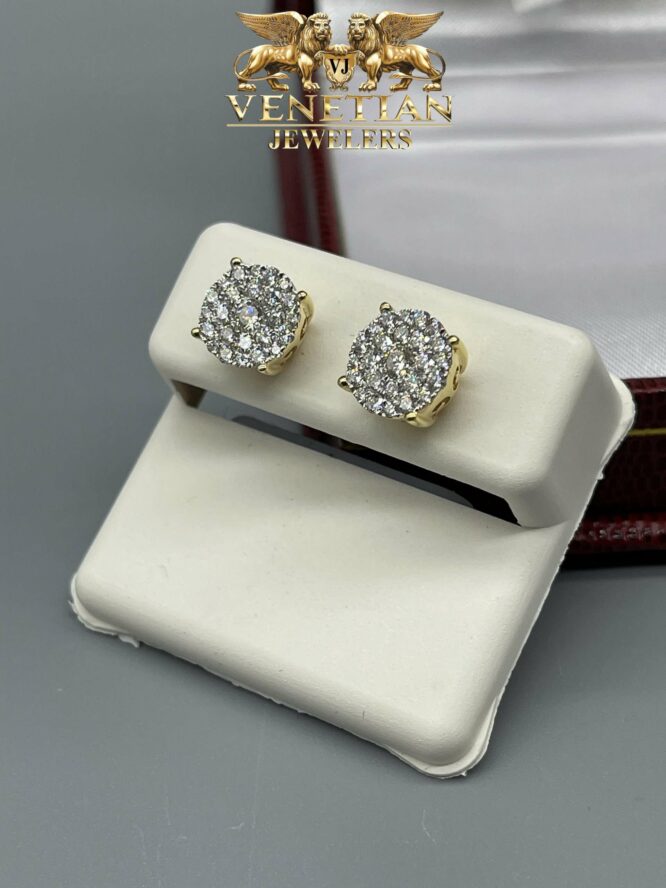 14KT 1.00CT Yellow Gold Diamond Earrings Screw Backs Honeycomb Set