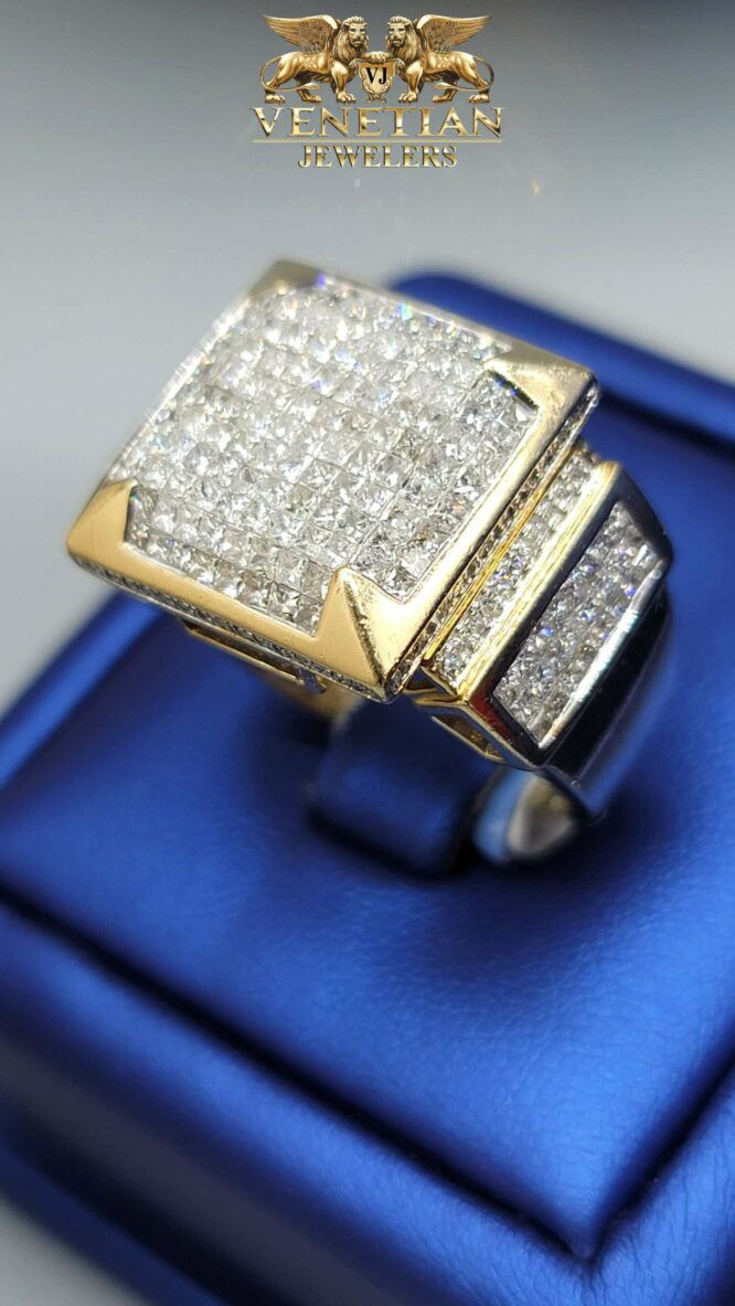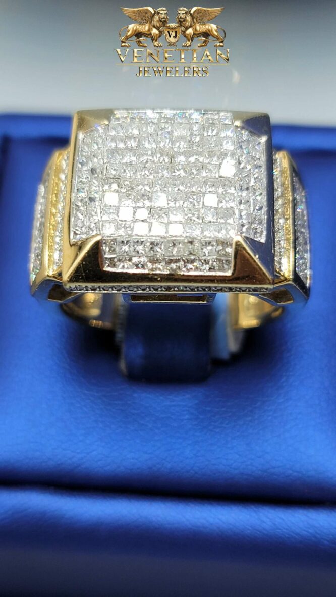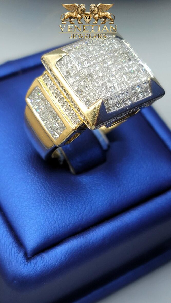 14KT 2.50CT Yellow Gold Mens Invisible Set Diamond Ring