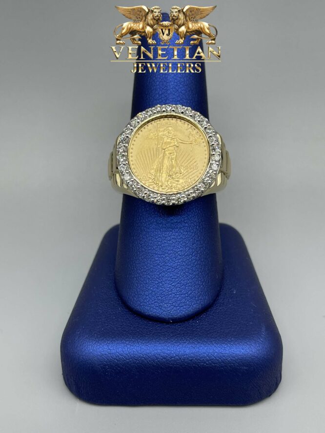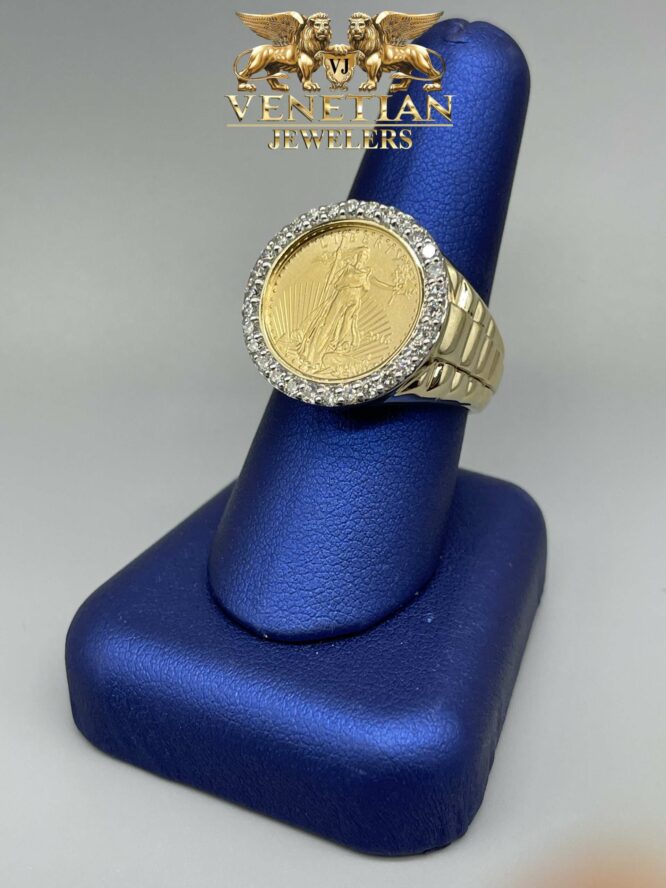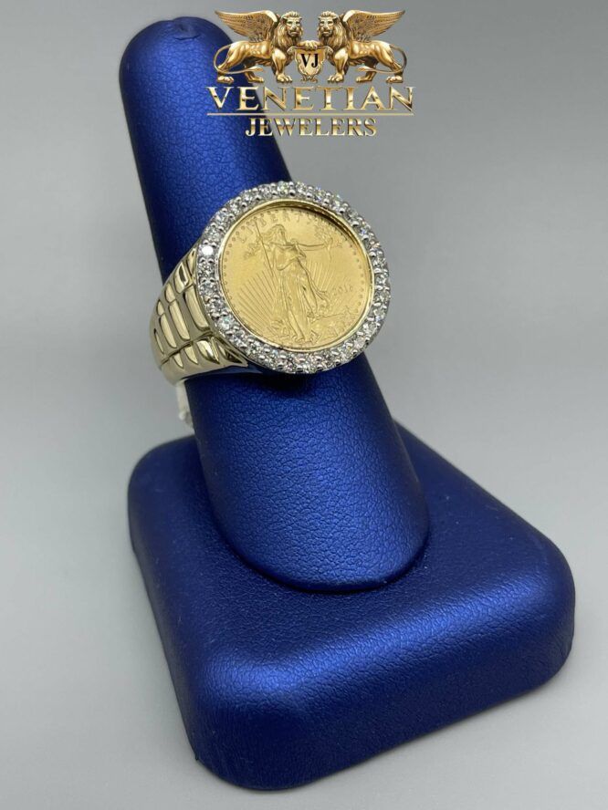 14KT Gold Setting With 24KT Liberty Coin Ring With 0.81CT Diamond Bezel