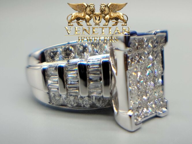14KT 3.00CT White Gold Cinderella Style Invisible Set With Roundcut N Baguette Diamonds Ring Size 7