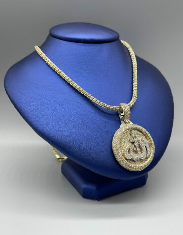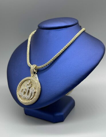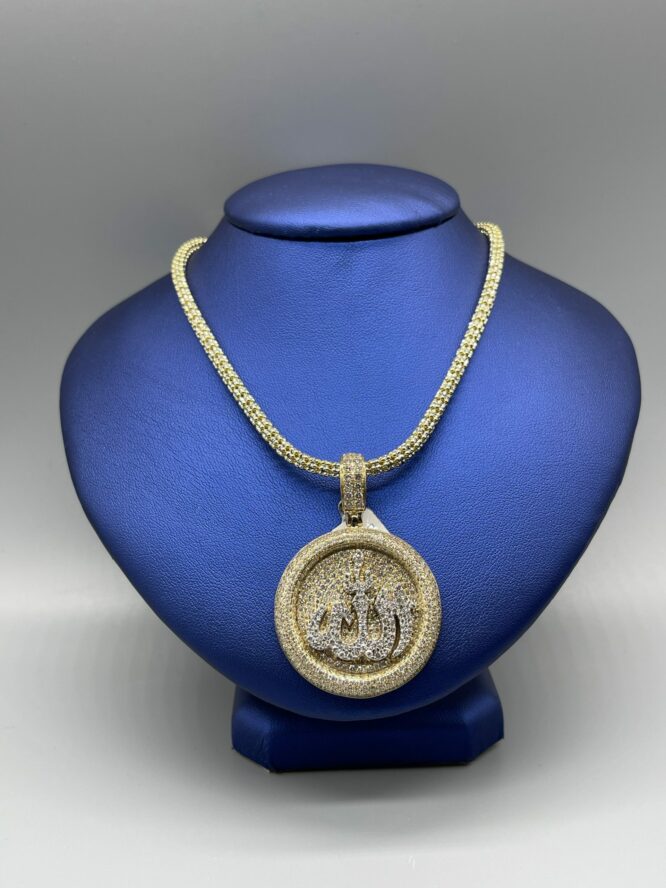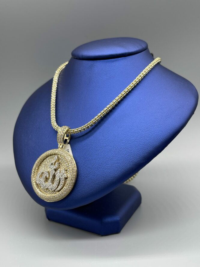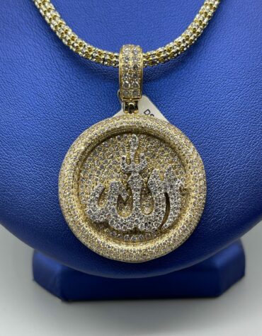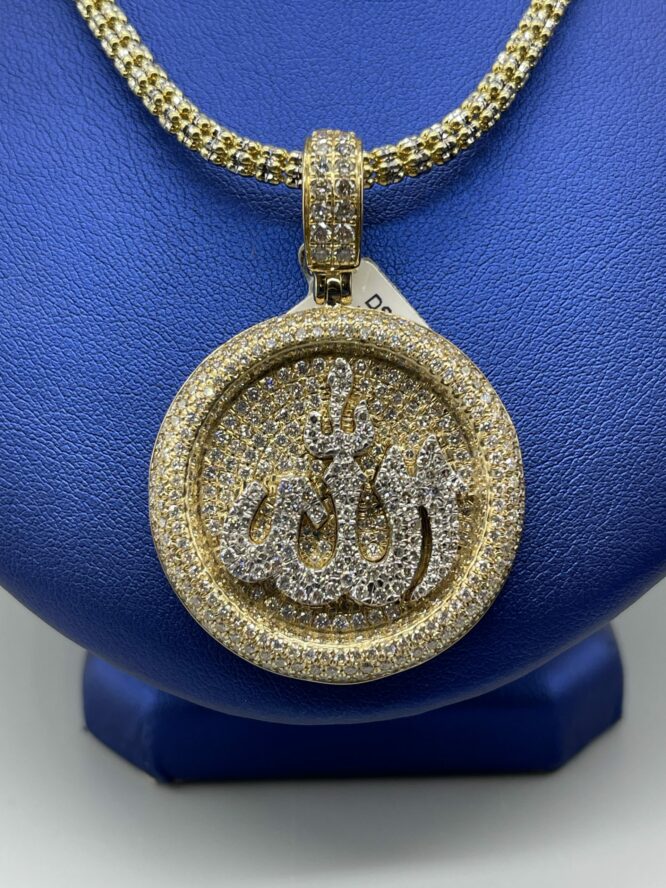 14KT 5.06CT Diamond Yellow Gold Allah Pendant With 10KT LaserCut 20″ Necklace Solid Set