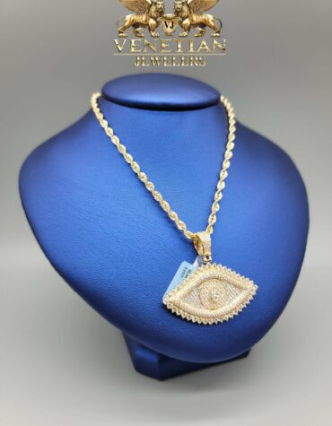 14KT Diamond Evil Eye 4.05CT Diamond Pendant With Diamond Cut 14KT Rope Chain 5.5 Grams Approx Weight