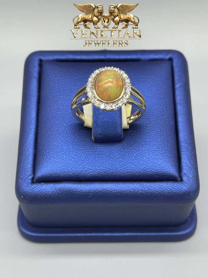 10KT Natural Opal Ring 1.39CT Center Stone 0.25CT Natural Diamonds Size 7