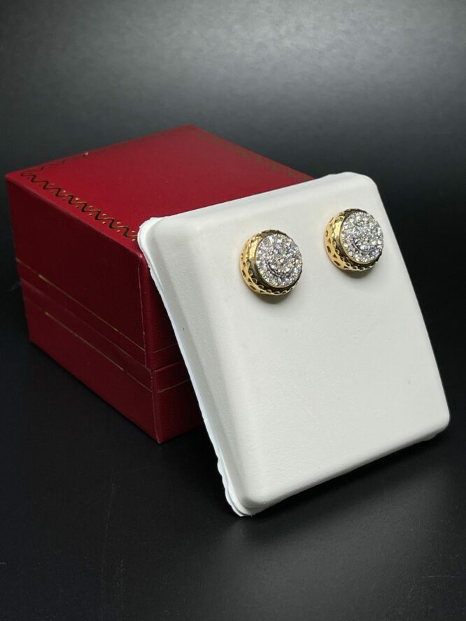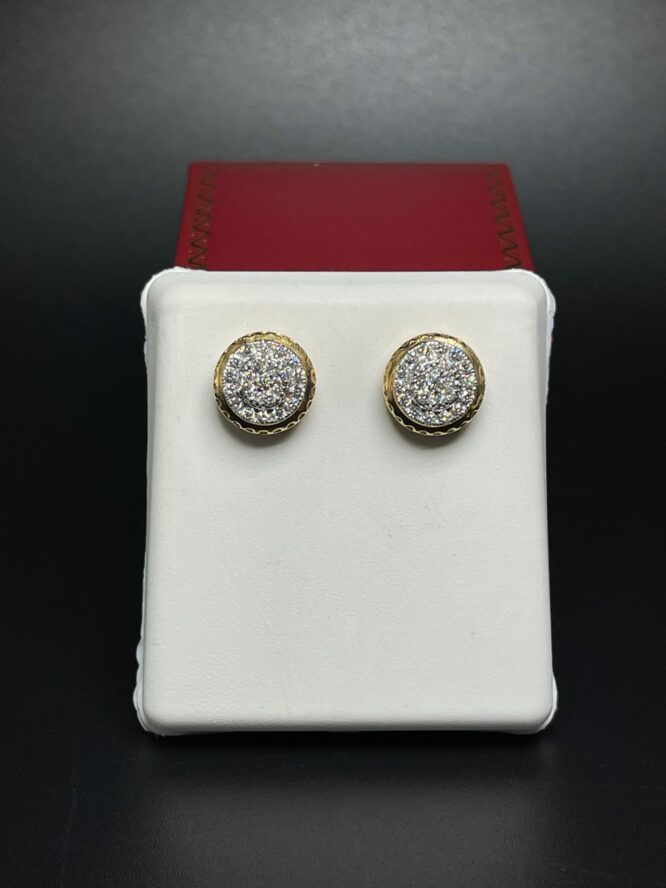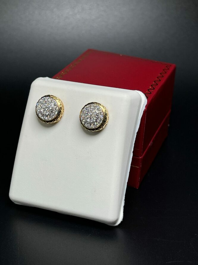 14KT Gold 0.60CT Diamond Cluster Bezel Cup Set Earrings 11MM Round Earrings Screw Backs
