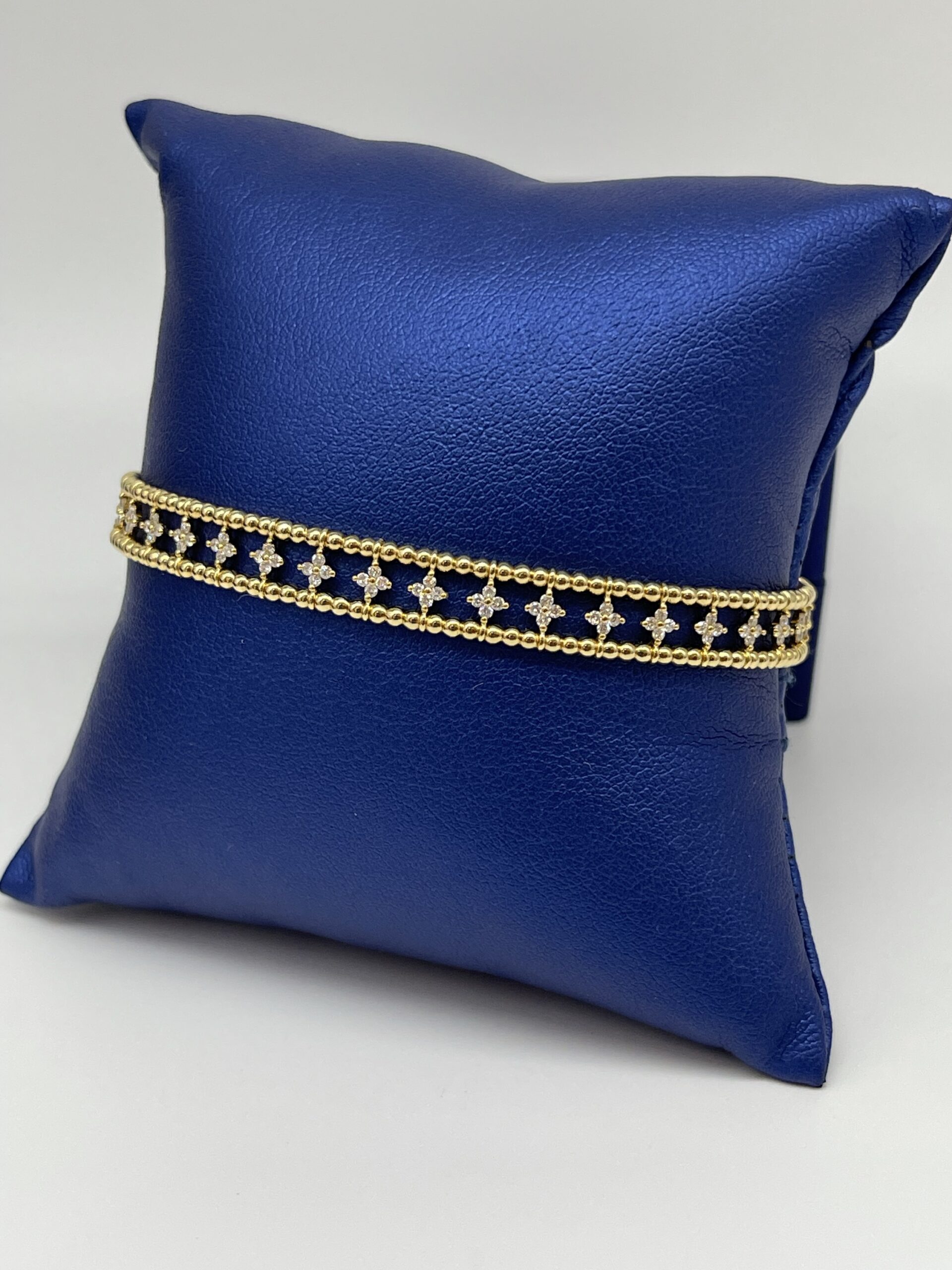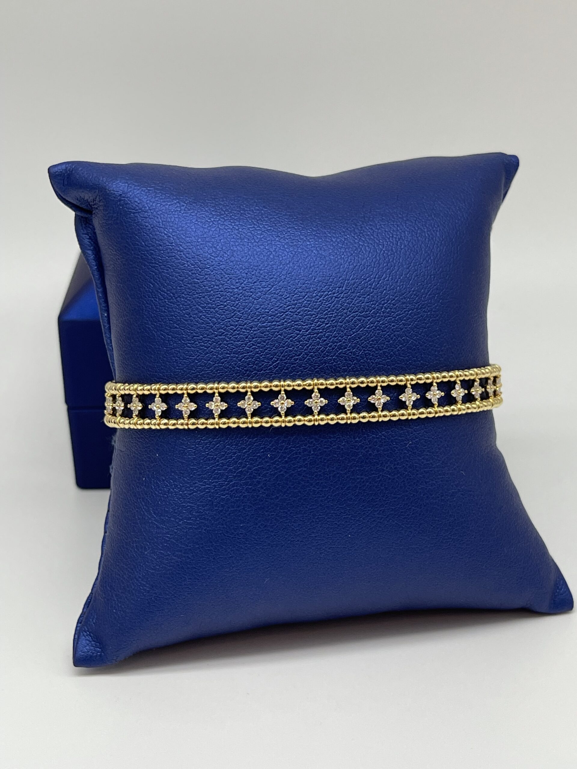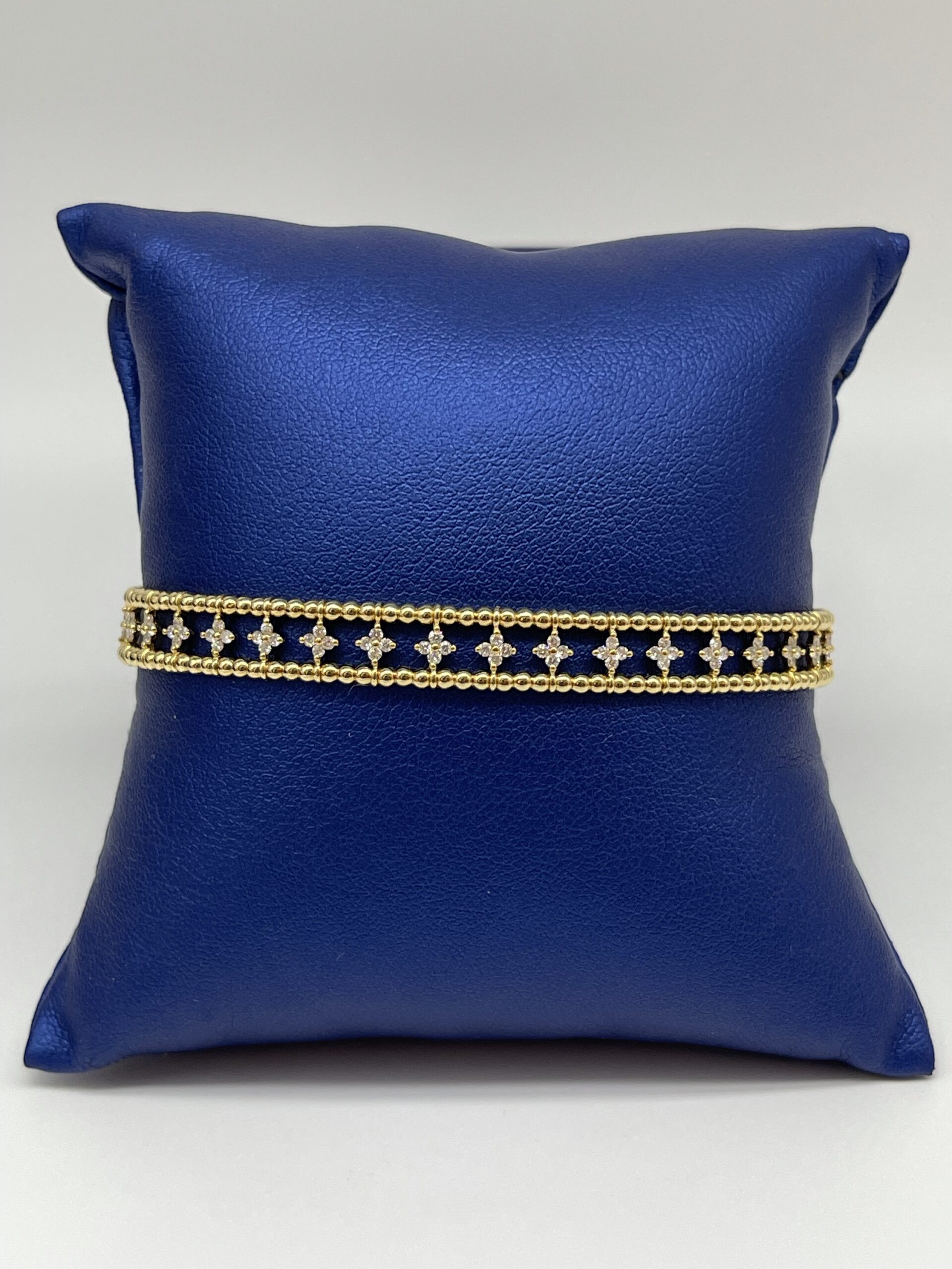 14KT Gold 0.70CT Diamond Beaded Flex Bangle Middle 4 Stone Kite Shape Prong Setting 8MM Width Approx Gold Weight 9.00 Gram
