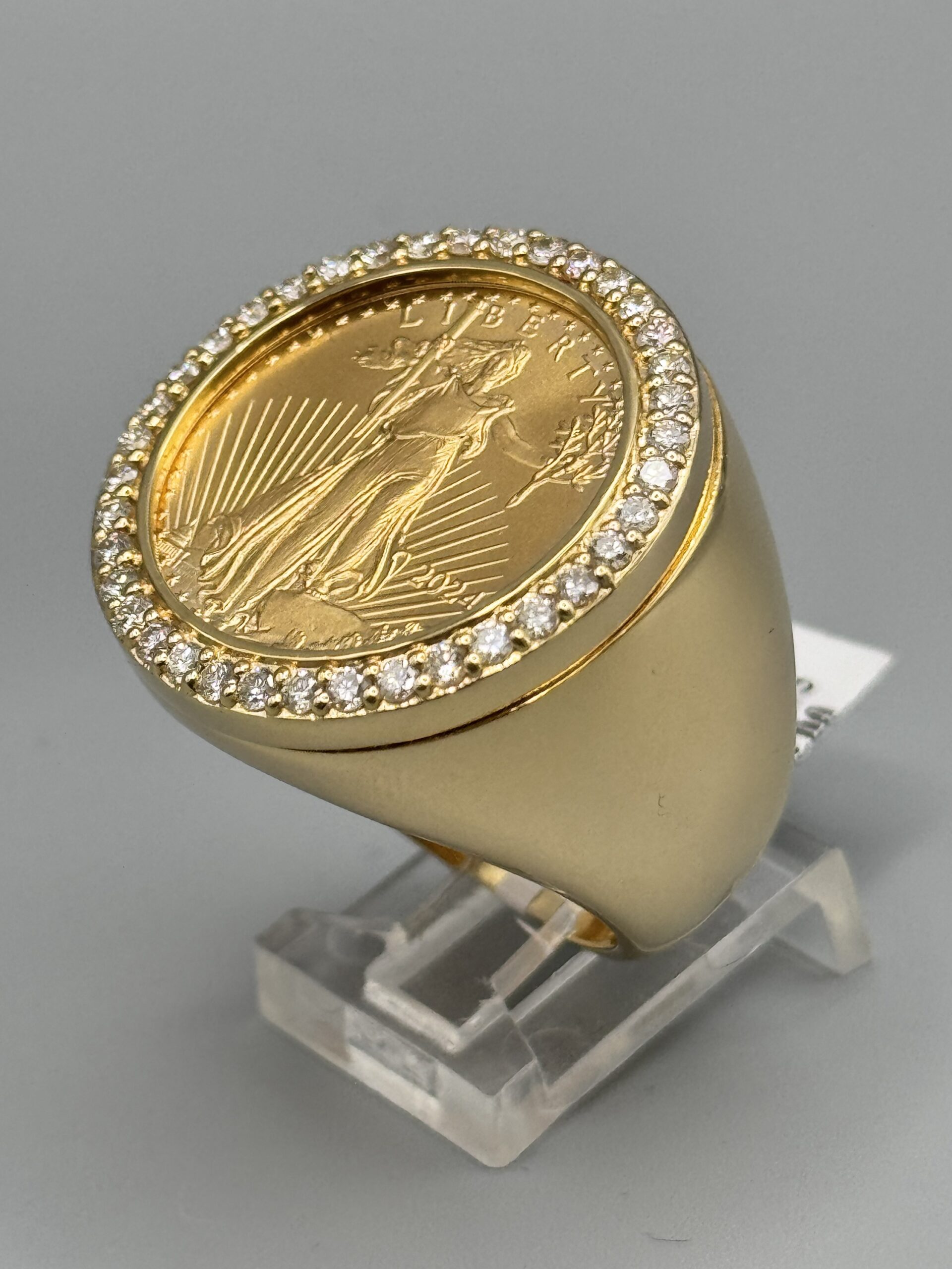 14KT Gold 0.95CT Diamond 1/4 OZ Coin Ring 14KT Gold 0.95CT Diamond 1/4 OZ Coin Ring Original price was: $18,629.49.Current price is: $7,934.49.