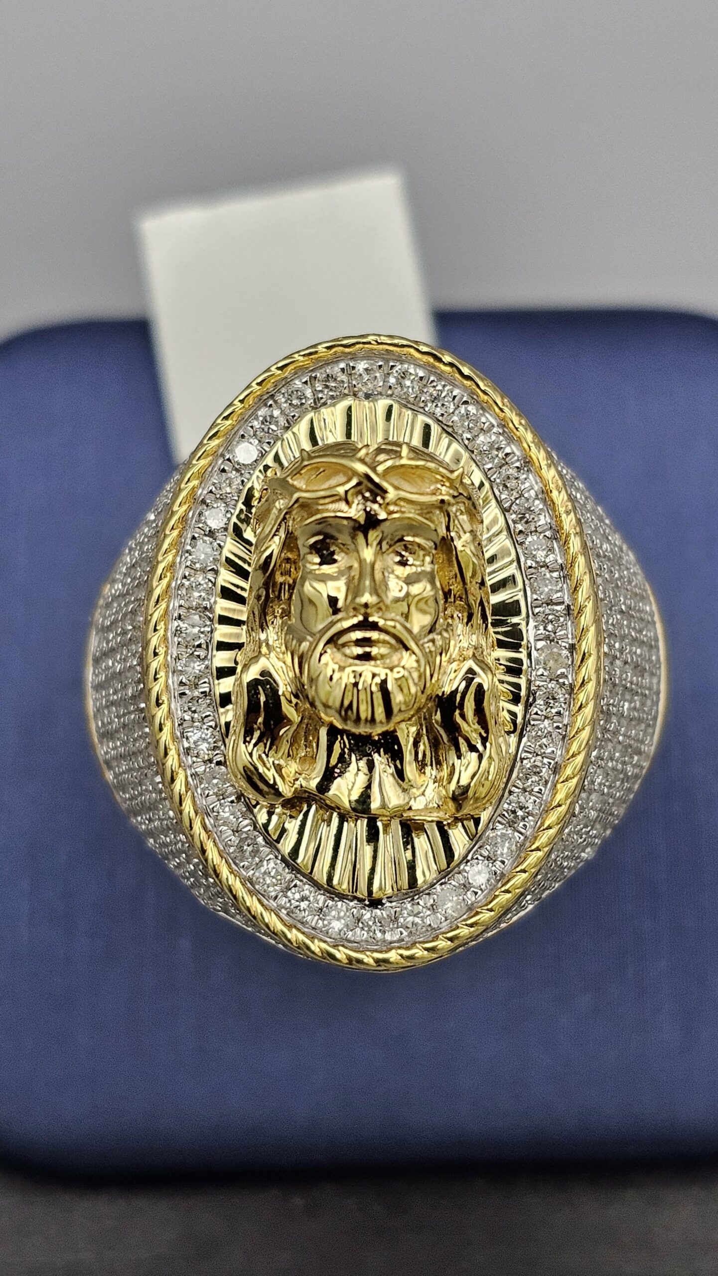 14KT Gold 1.00CT Diamomd Jesus Face Ring With 3D Face Approx Gold Weight 12.46 Gram Size 10 VS Quality Natural Diamonds Sizing Available