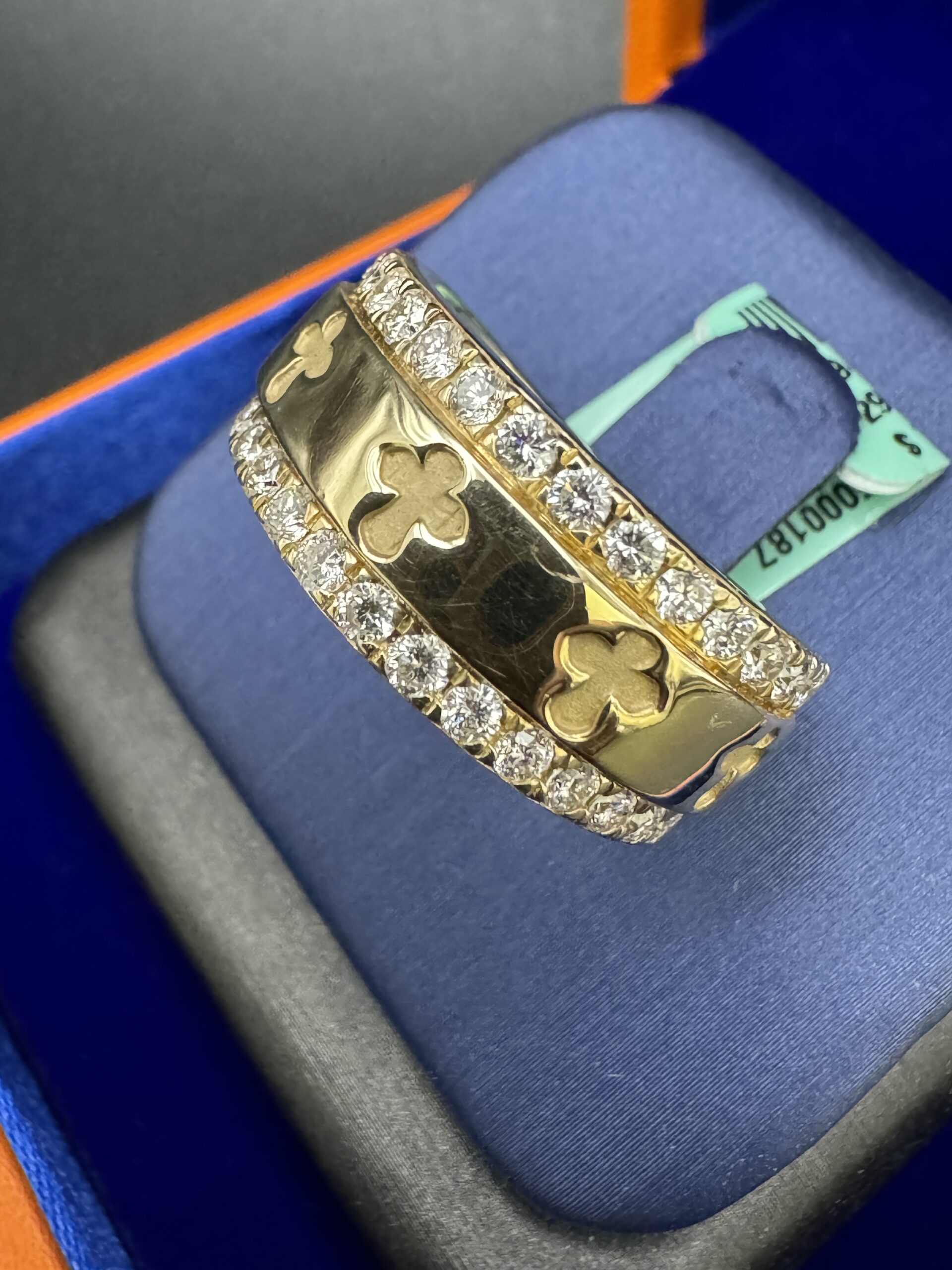 Elevate your style with this 14KT gold men’s band ring featuring 1.00CT diamonds. With a 12MM width and weighing 9.5 grams, it’s available in size 10 with sizing options for a perfect fit.