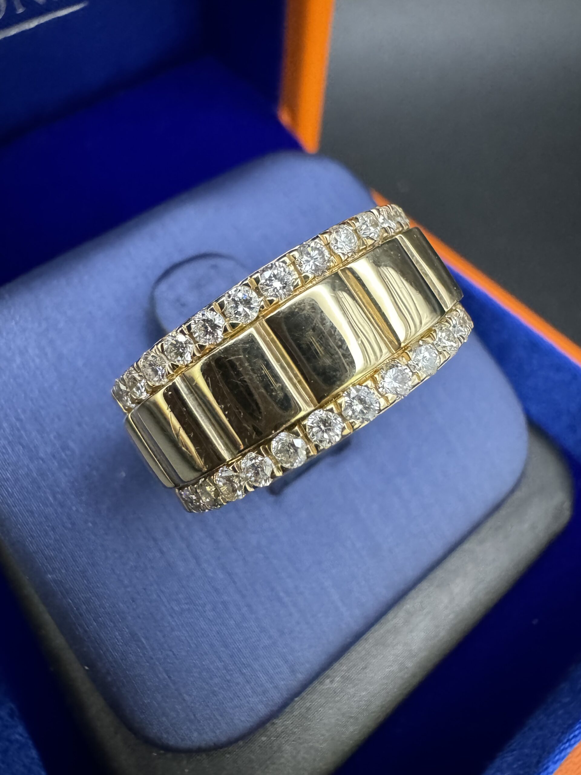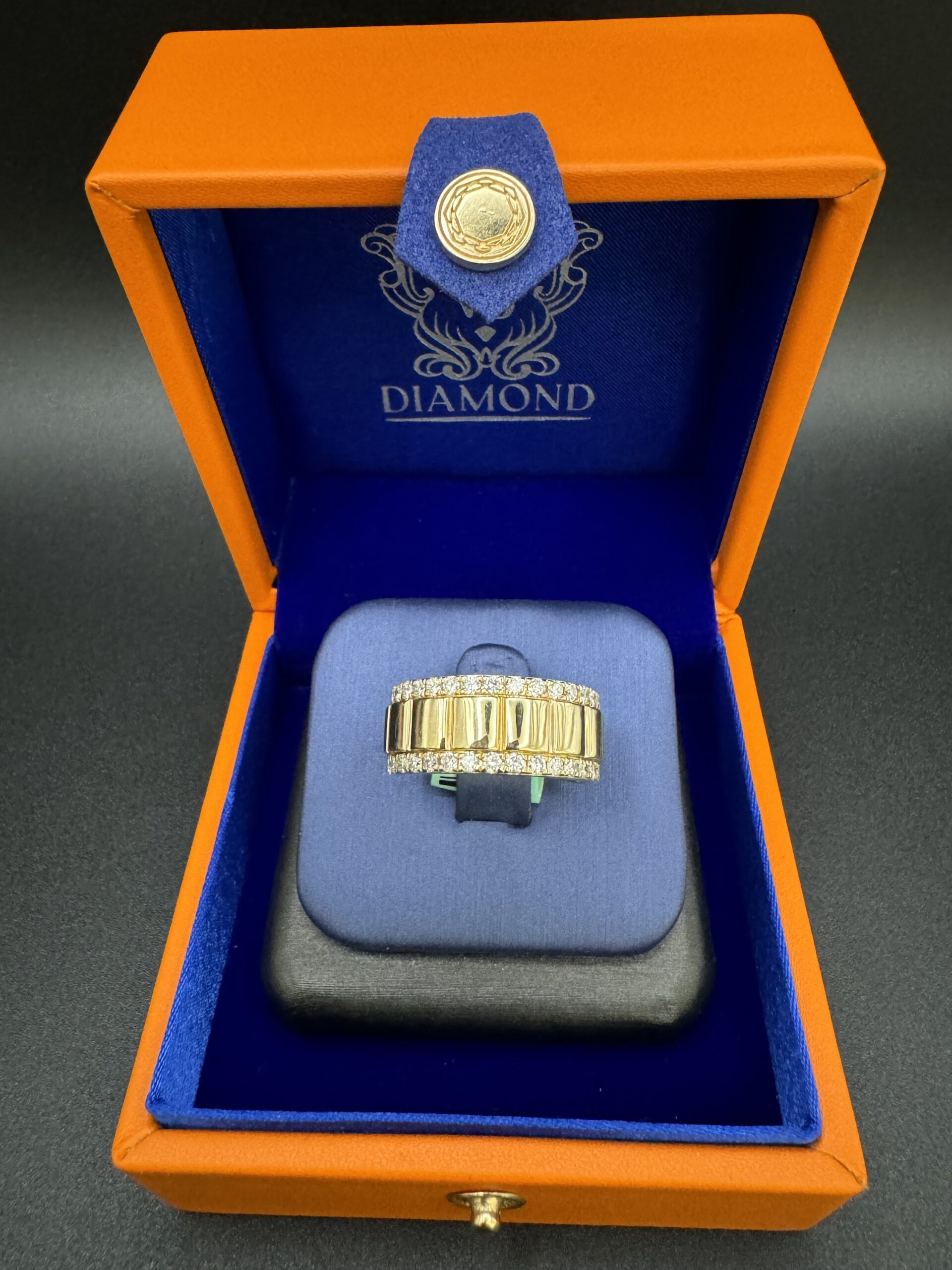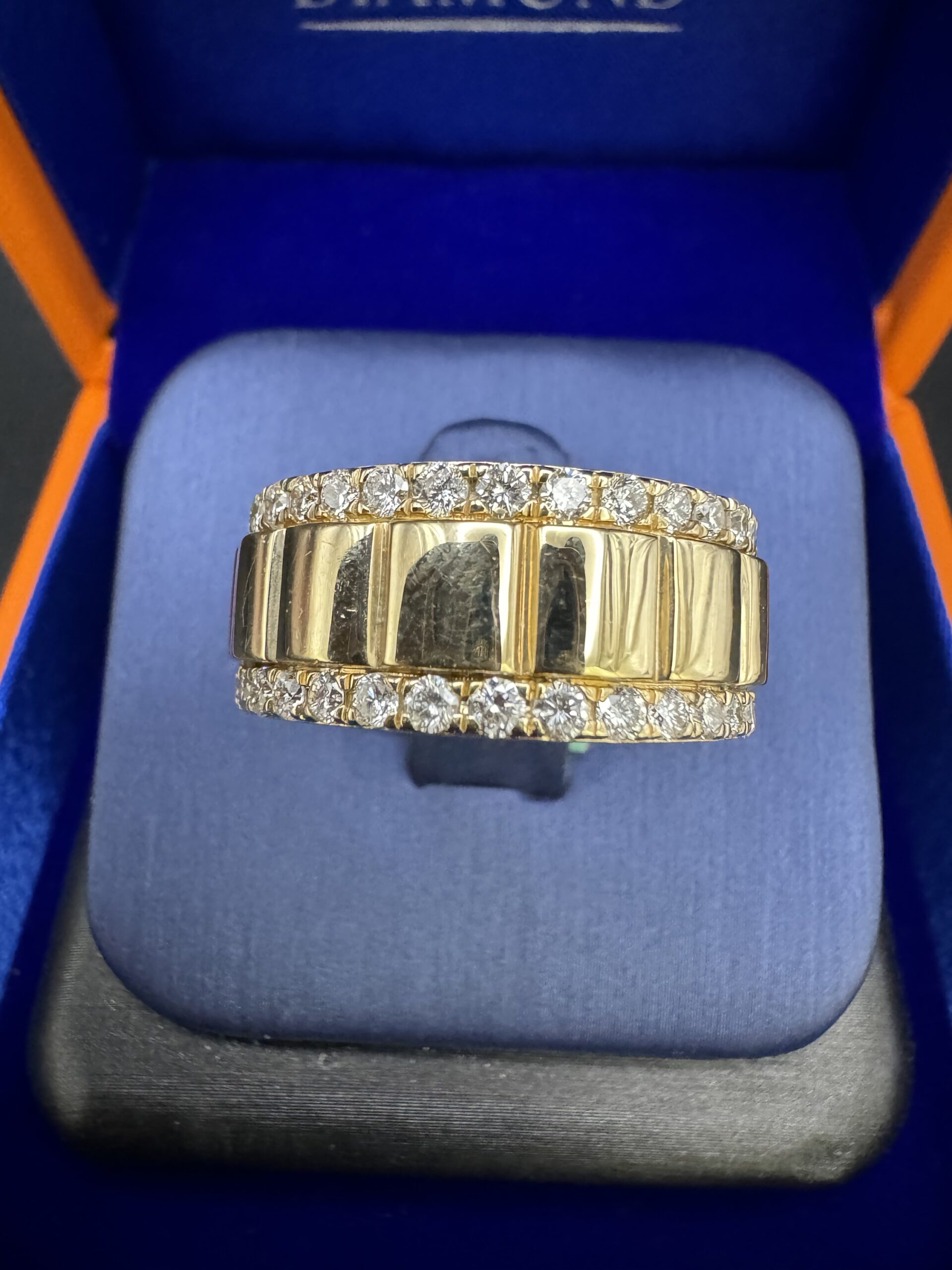 Elevate your style with this 14KT Gold Men’s Band Ring featuring a stunning 1.00CT diamond. Size 10 with a 12MM width and weighing 8.7 grams, this ring is perfect for making a bold statement.