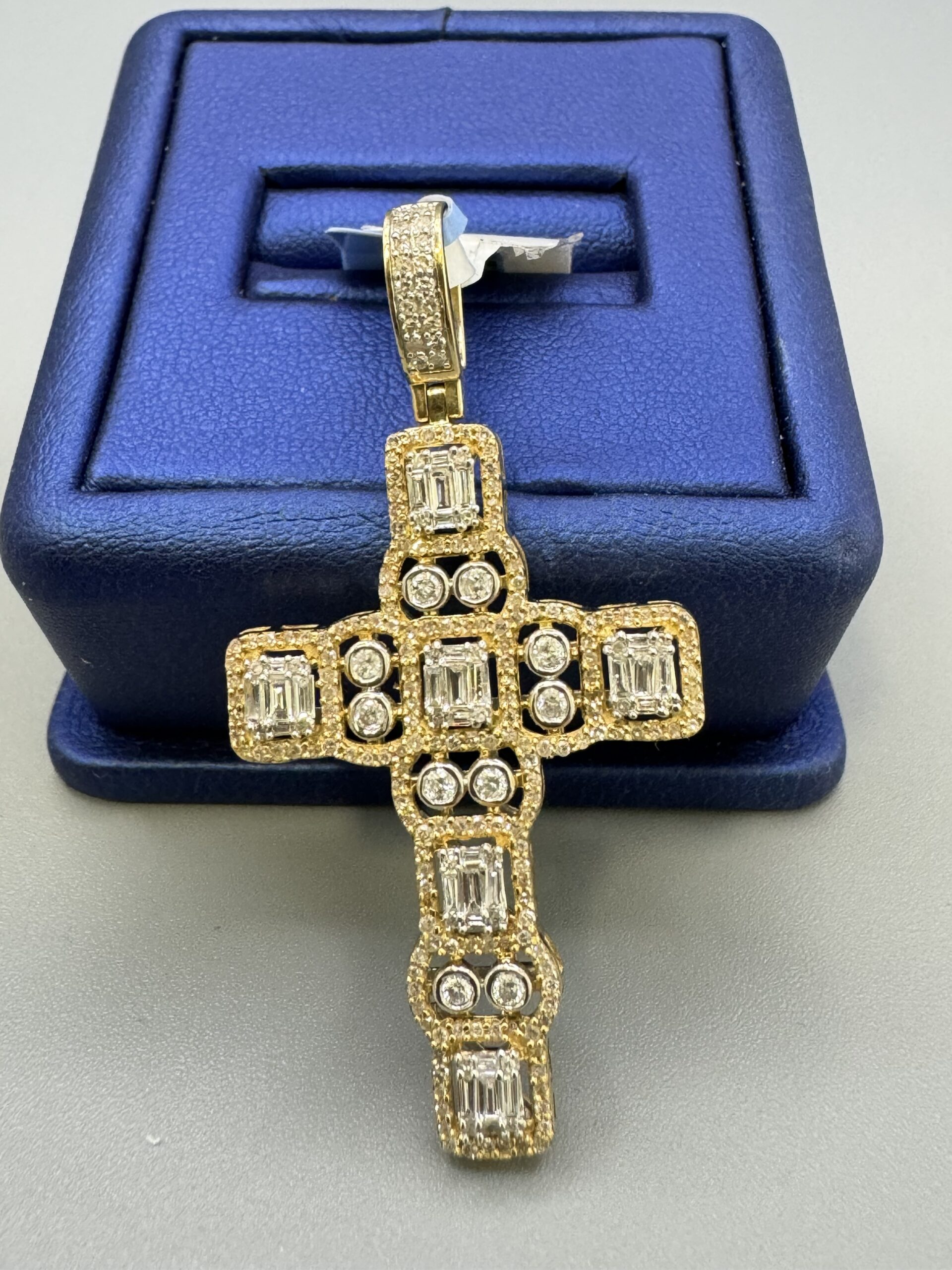 Shine bright with this stunning 14KT gold diamond cross pendant. Measuring 2″ tall and 1″ wide, featuring 1.08CT of dazzling diamonds and weighing 5.2 grams. Embrace elegance every day!