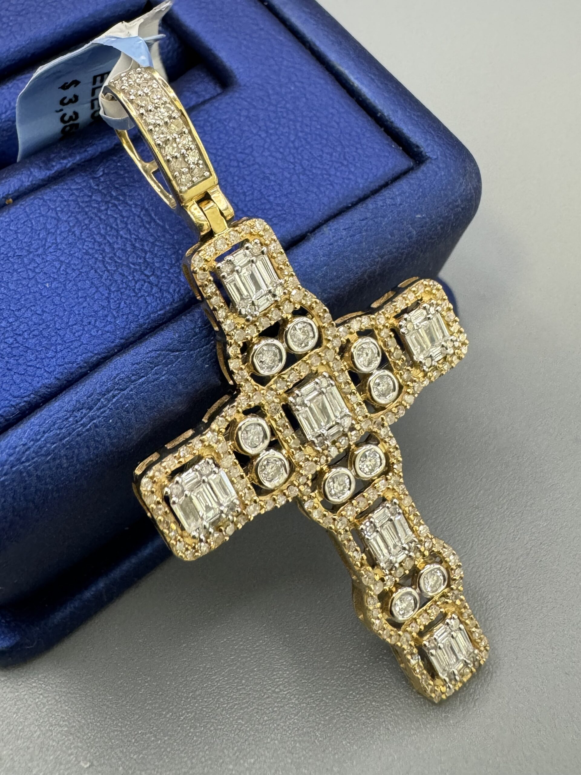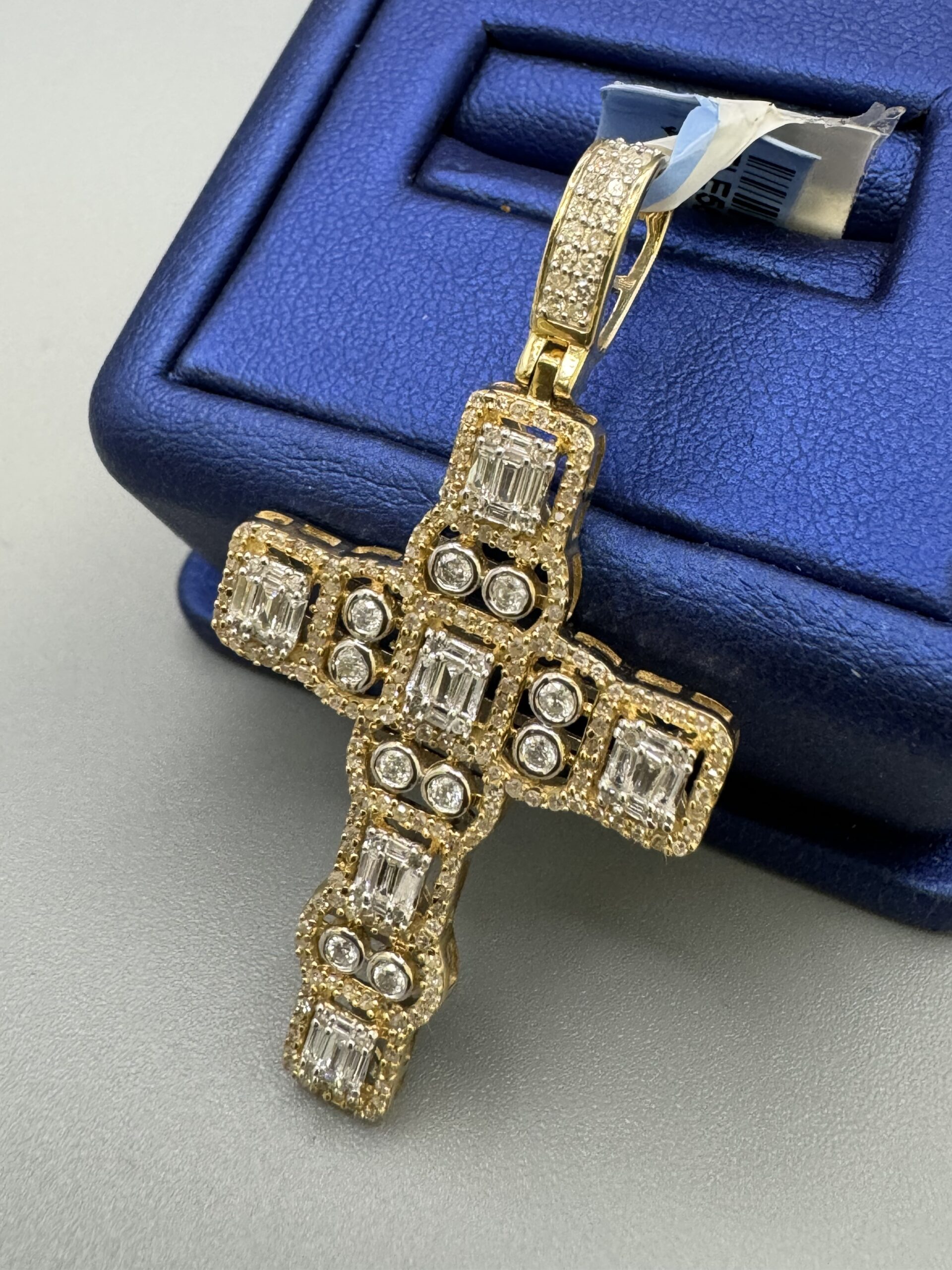 14KT Gold 1.08CT Diamond Cross Pendant 2″ Tall by 1″ Wide Approx Gold Weight 5.2Gram