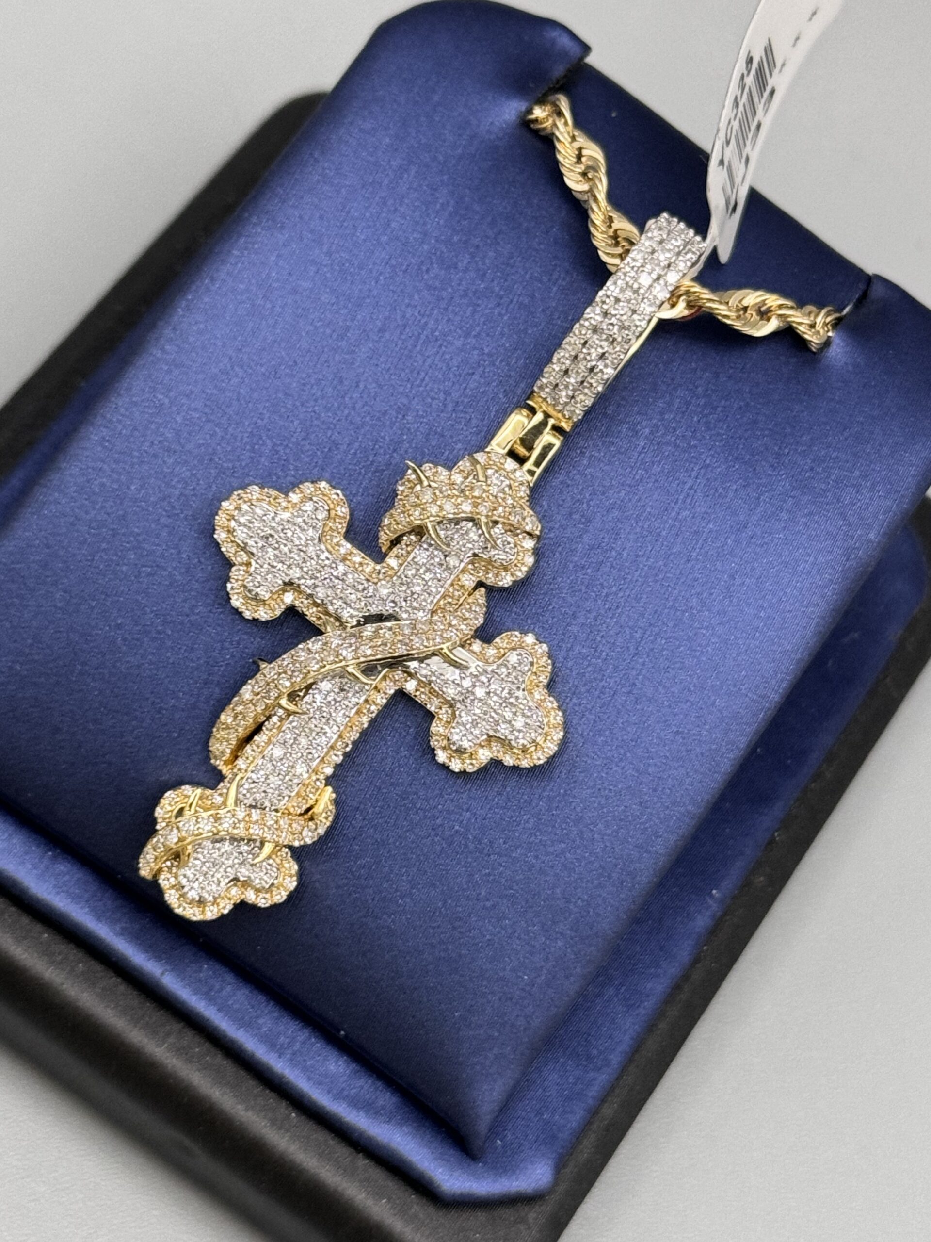 14KT Gold 1.35CT Diamond Cross Pendant ComboSet Comes With 22″ Rope Necklace 3MM Approx Gold Weight 4.9 Grams Pendant 2″ Tall By 1″ Approx Gold Weight 8.3 Grams