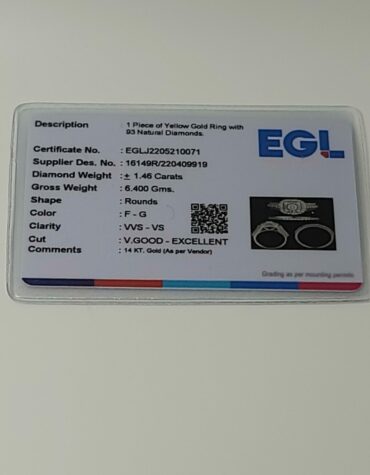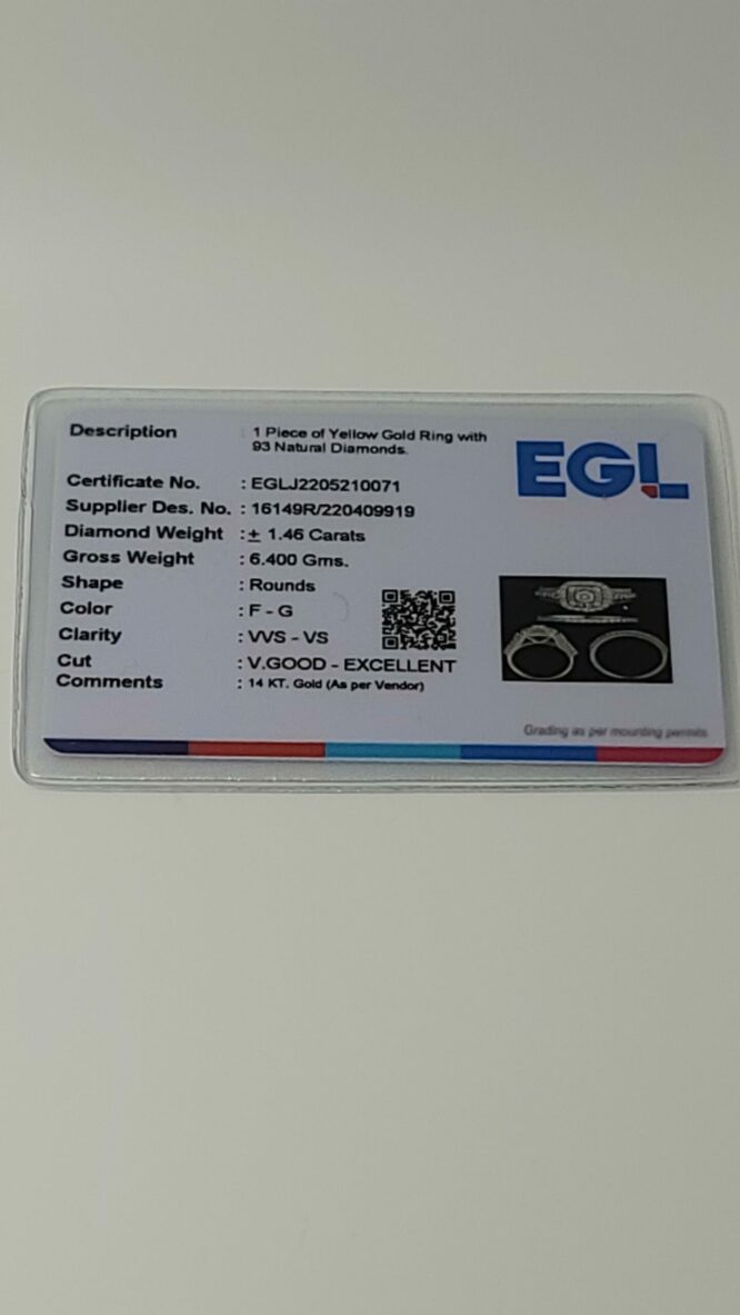 14KT Yellow Gold 1.46CT Certified Bridal Ring VS-VVS Clarity F-G Color Approx Gold Weight 6.40 Grams