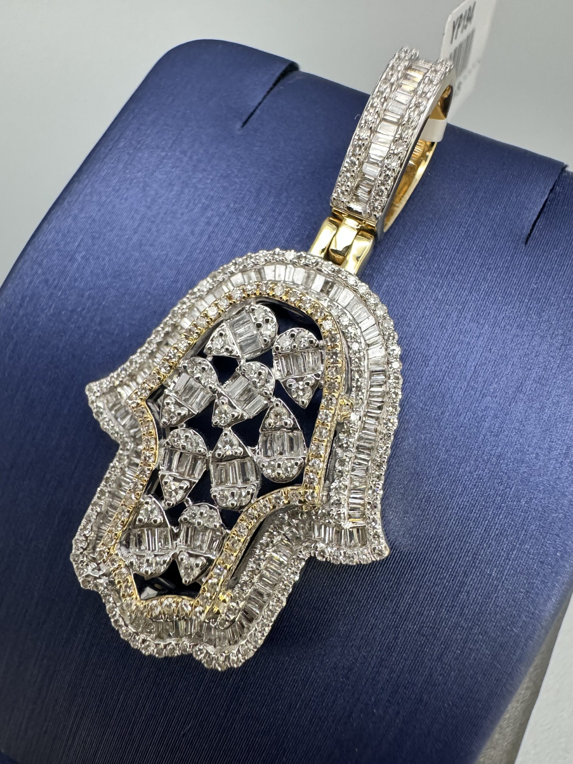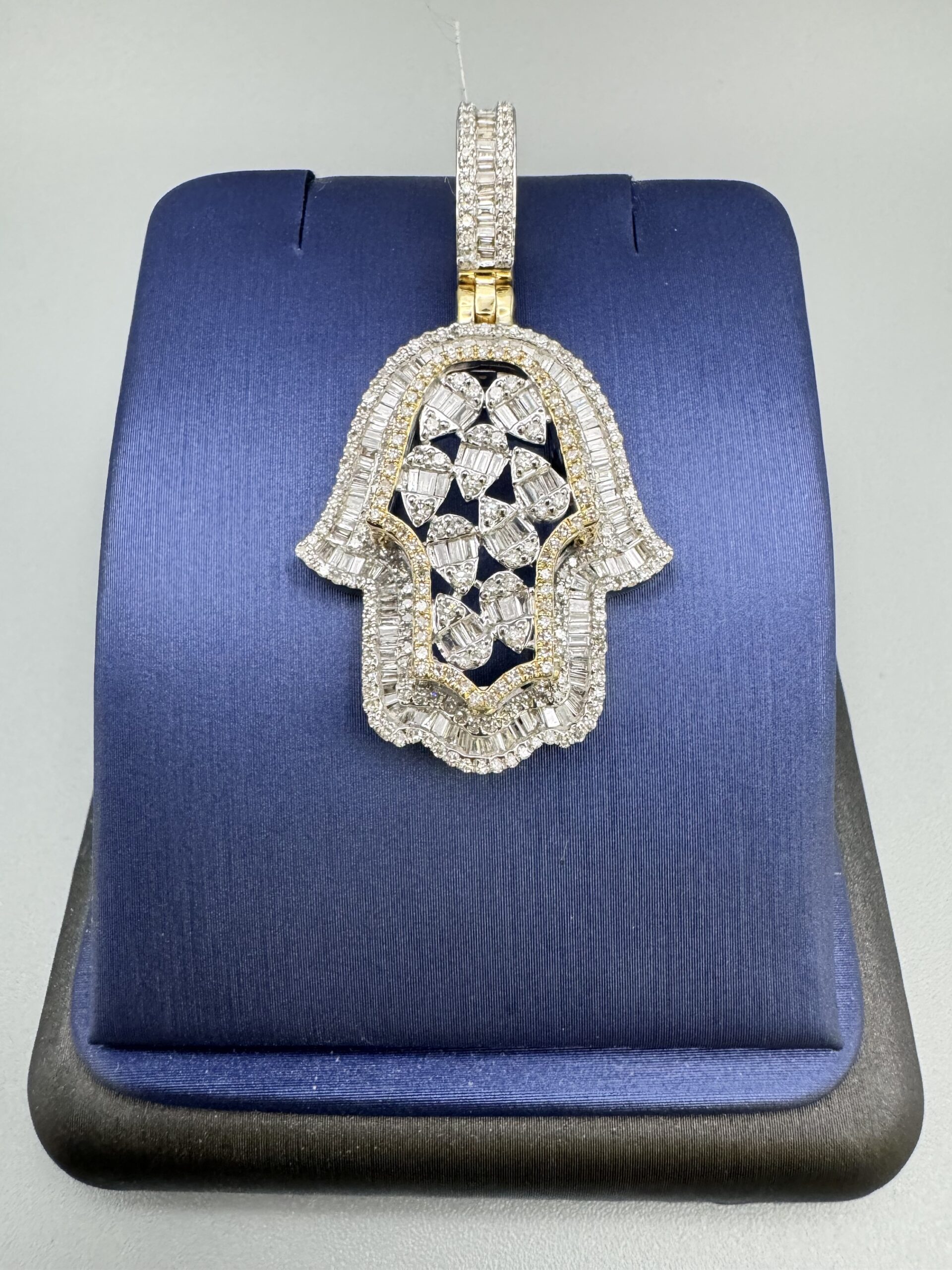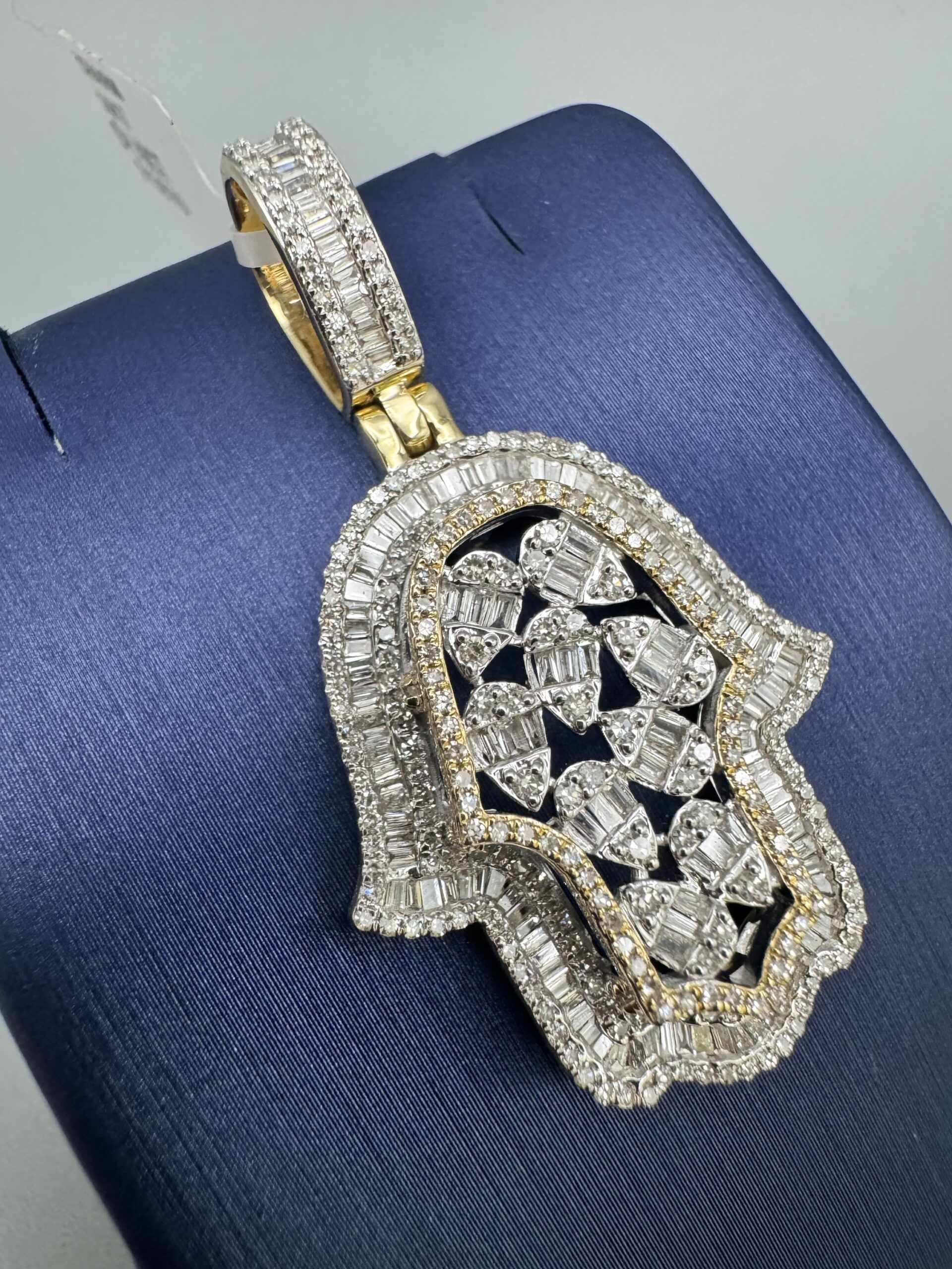 14KT Gold 1.49CT Diamond Hamsa Pendant With Baguette Diamonds VS Clarity Approx Gold Weight 7.7 Grams 3D 1.75″ Tall 1″ Wide